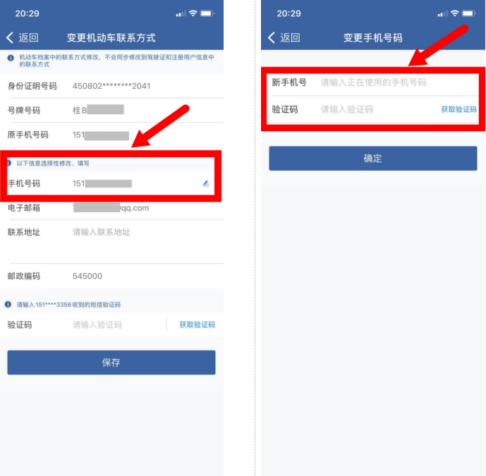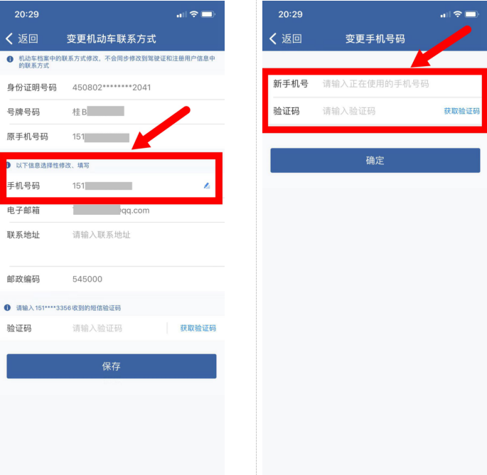 如何在手机上变更驾驶证和机动车联系方式?