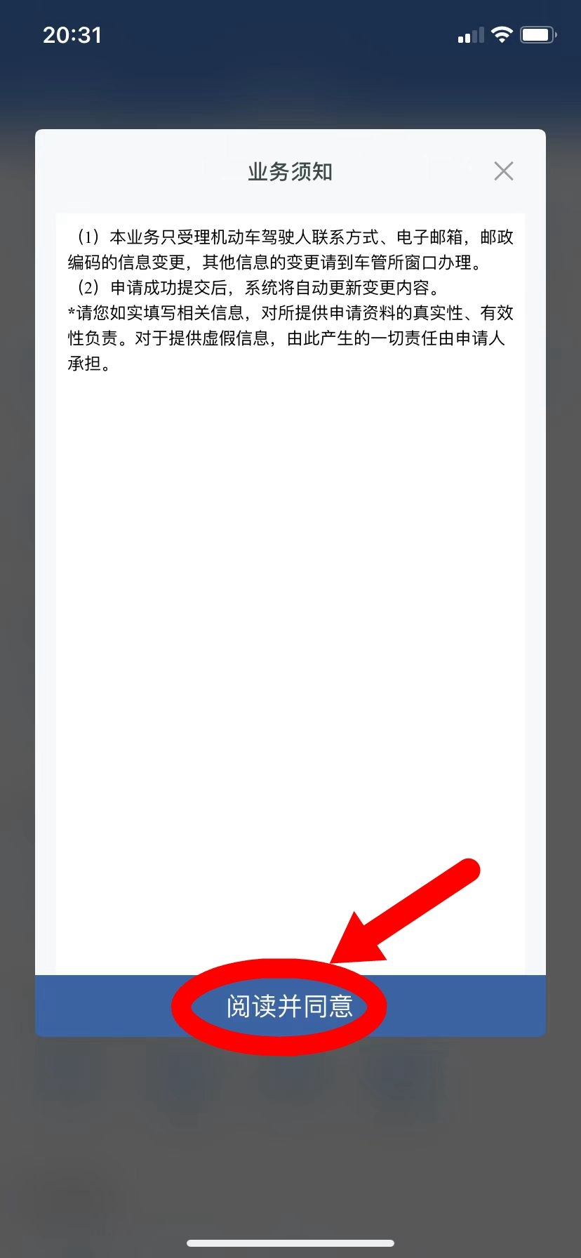 2、认真阅读【业务须知】点击【阅读并同意】,进入下一步;