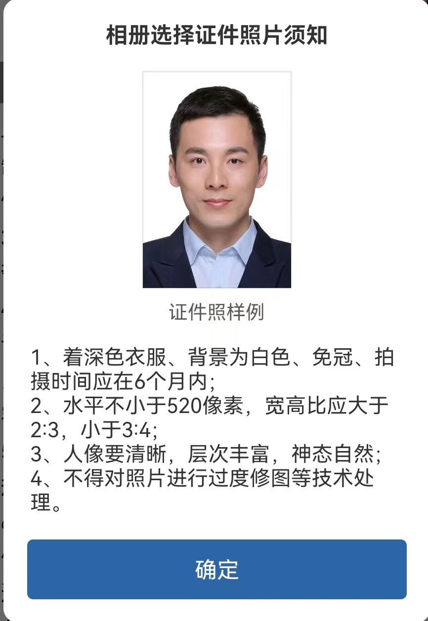 6、应上传近6个月内的证件照片,不得对人像特征进行技术处理,不得使用合成相片。