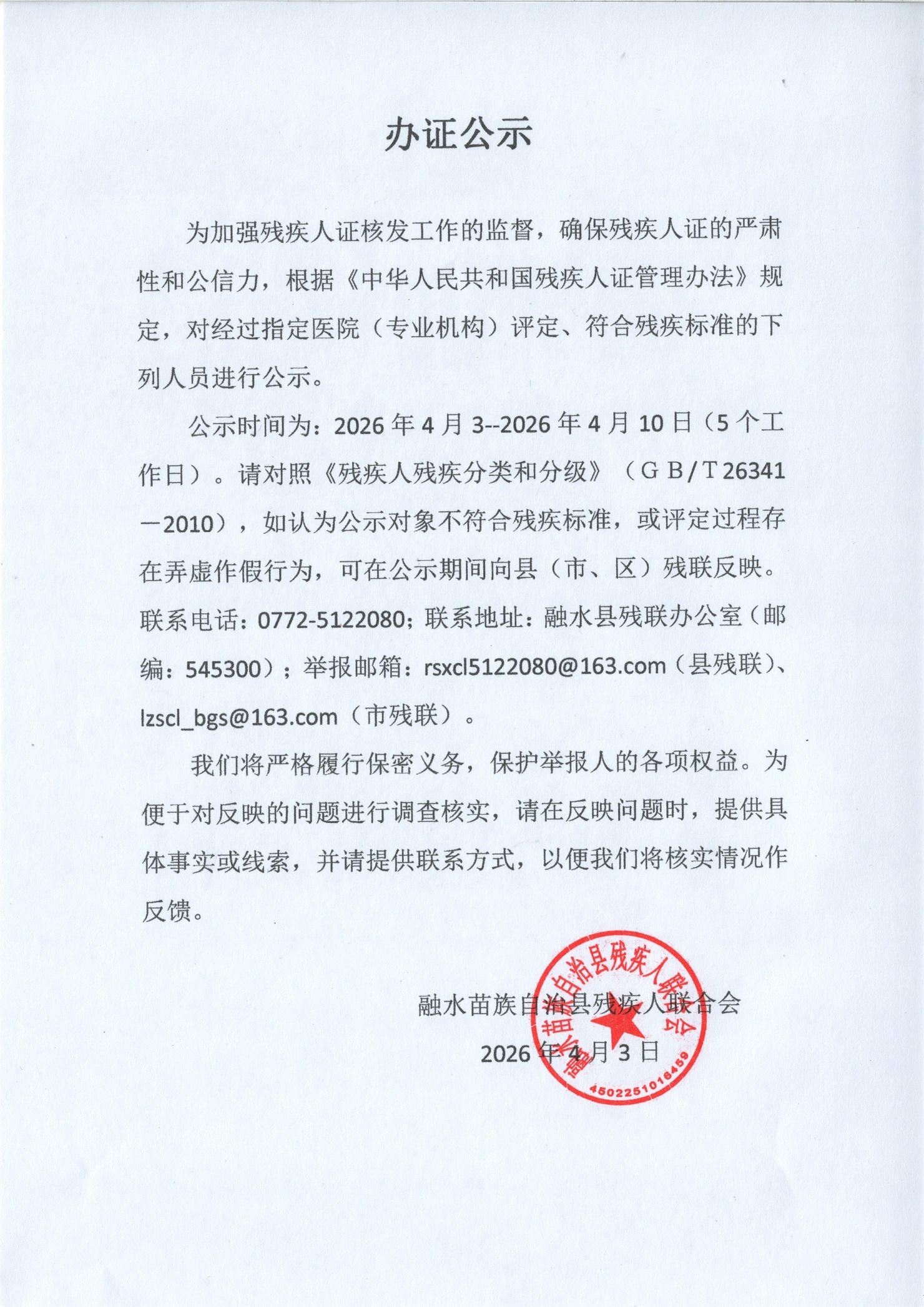 办证公示( 2026.4.3-2026.4.10)