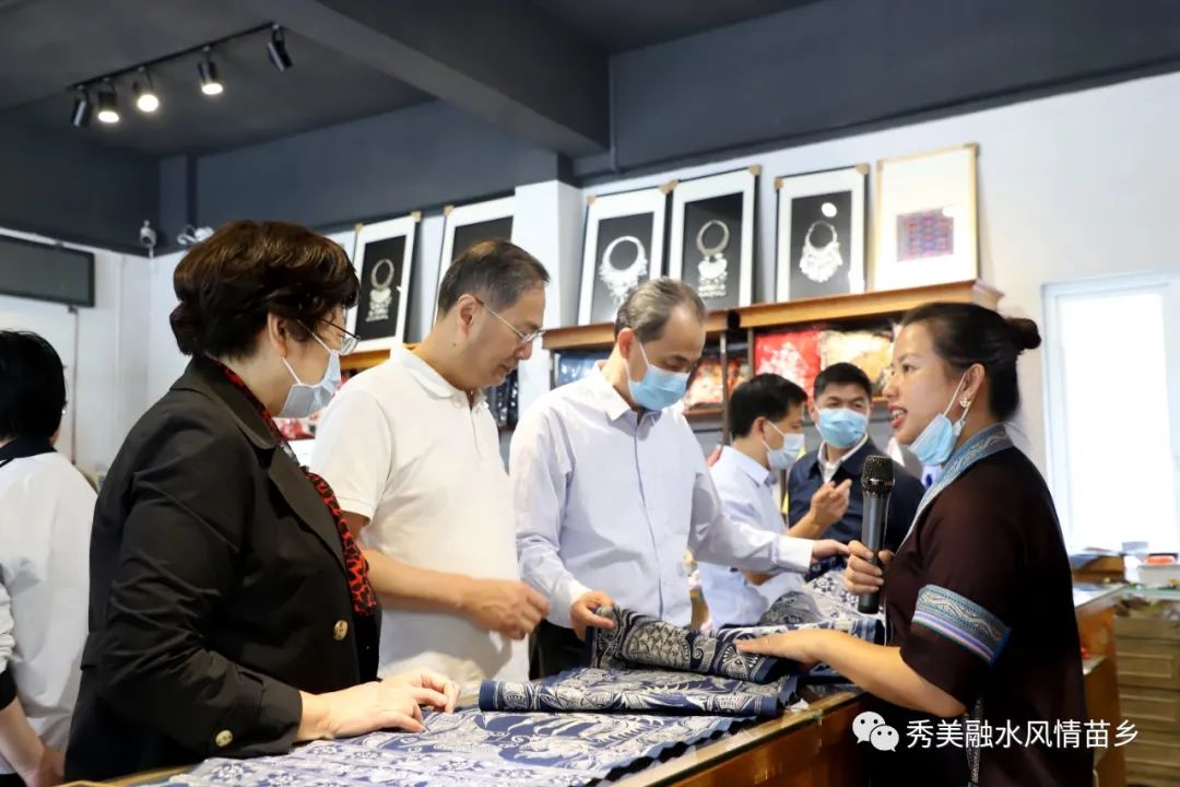 在苗家小镇社区,通过社区第一书记的介绍,考察团了解了苗家小镇社区如何积极落实党的惠民政策,解决搬迁群众后续发展问题,实现搬迁群众“稳得住、有就业、逐步能致富”,不断提升居民满意度的工作情况。随后,考察团一行在老君洞和梦呜苗寨考察了融水文旅融合助力乡村振兴工作以及少数民族聚居区民族生态文化保护和发展工作情况。