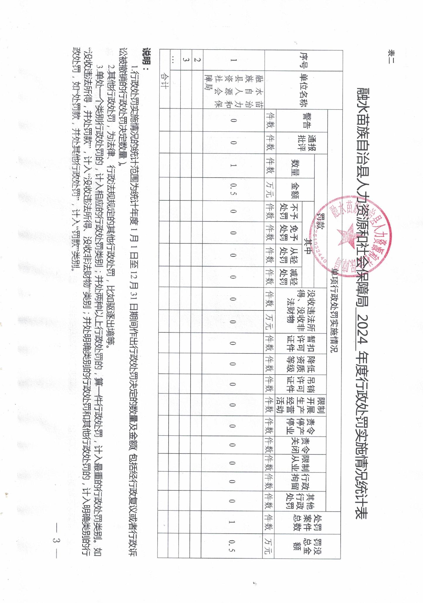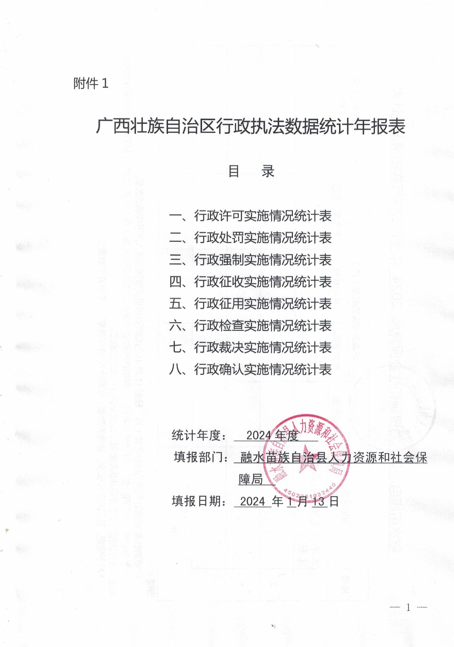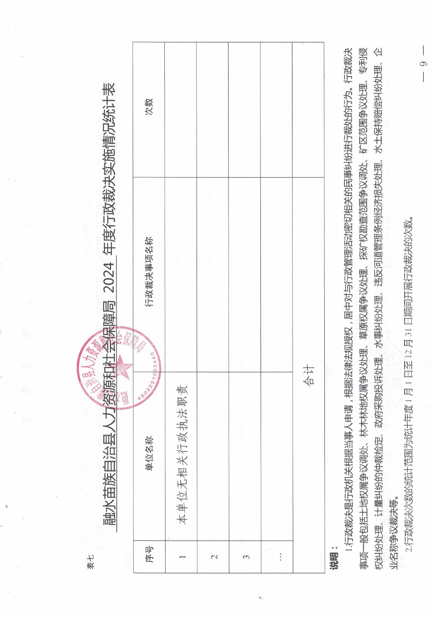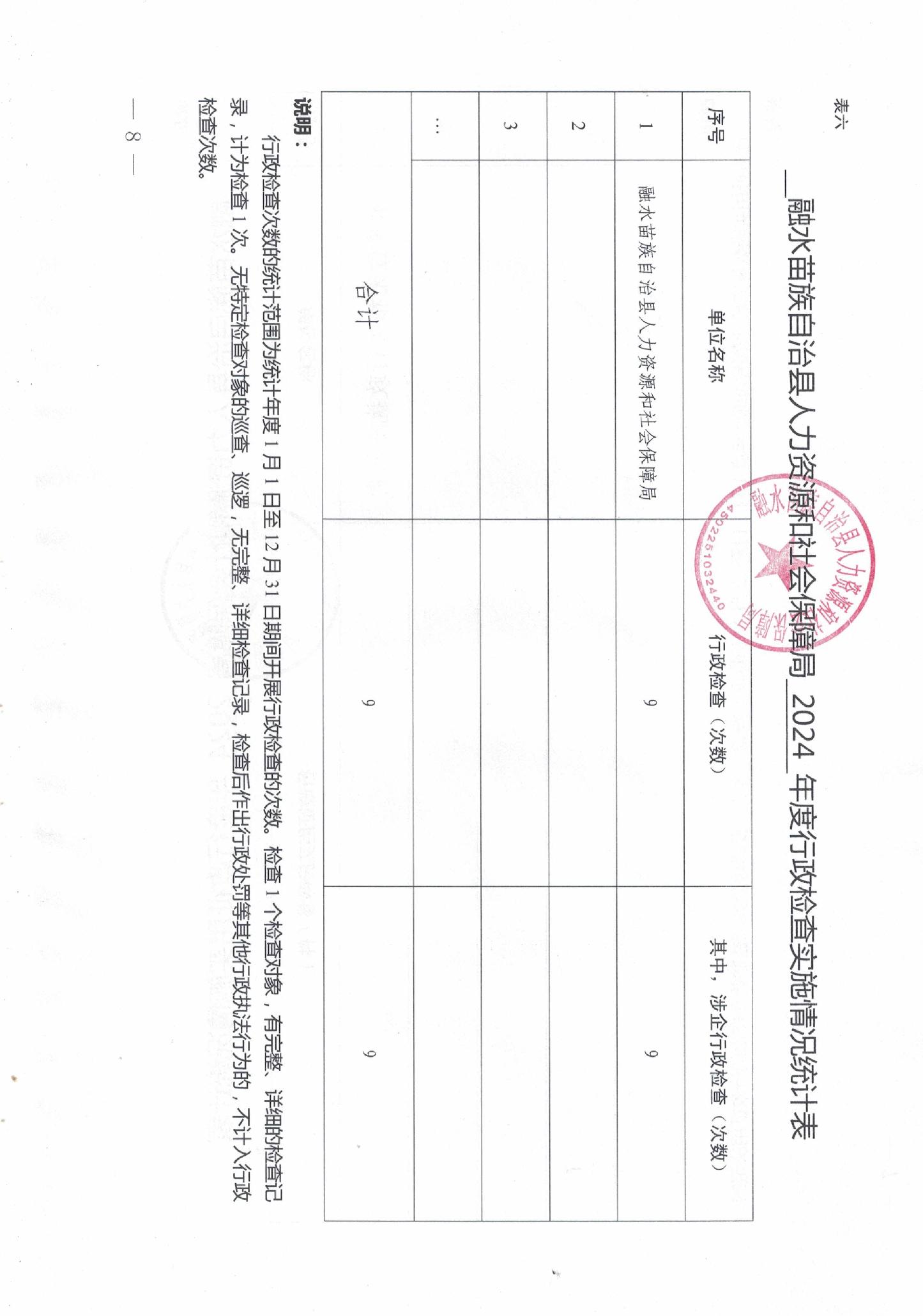 融水苗族自治县人力资源和社会保障局2024年度行政执法数据统计年报表