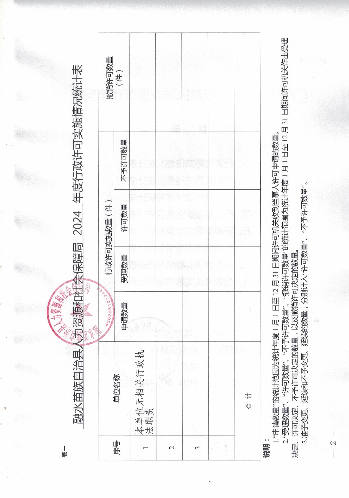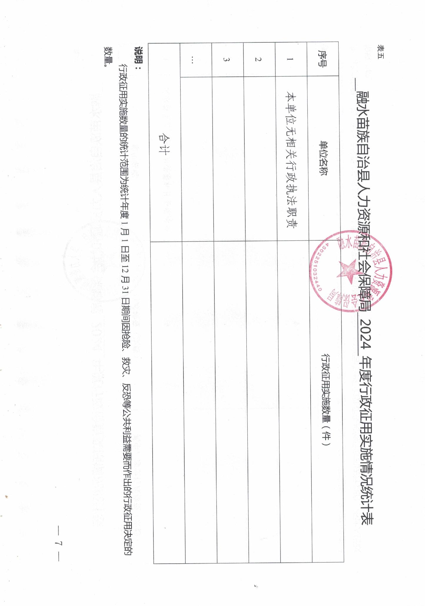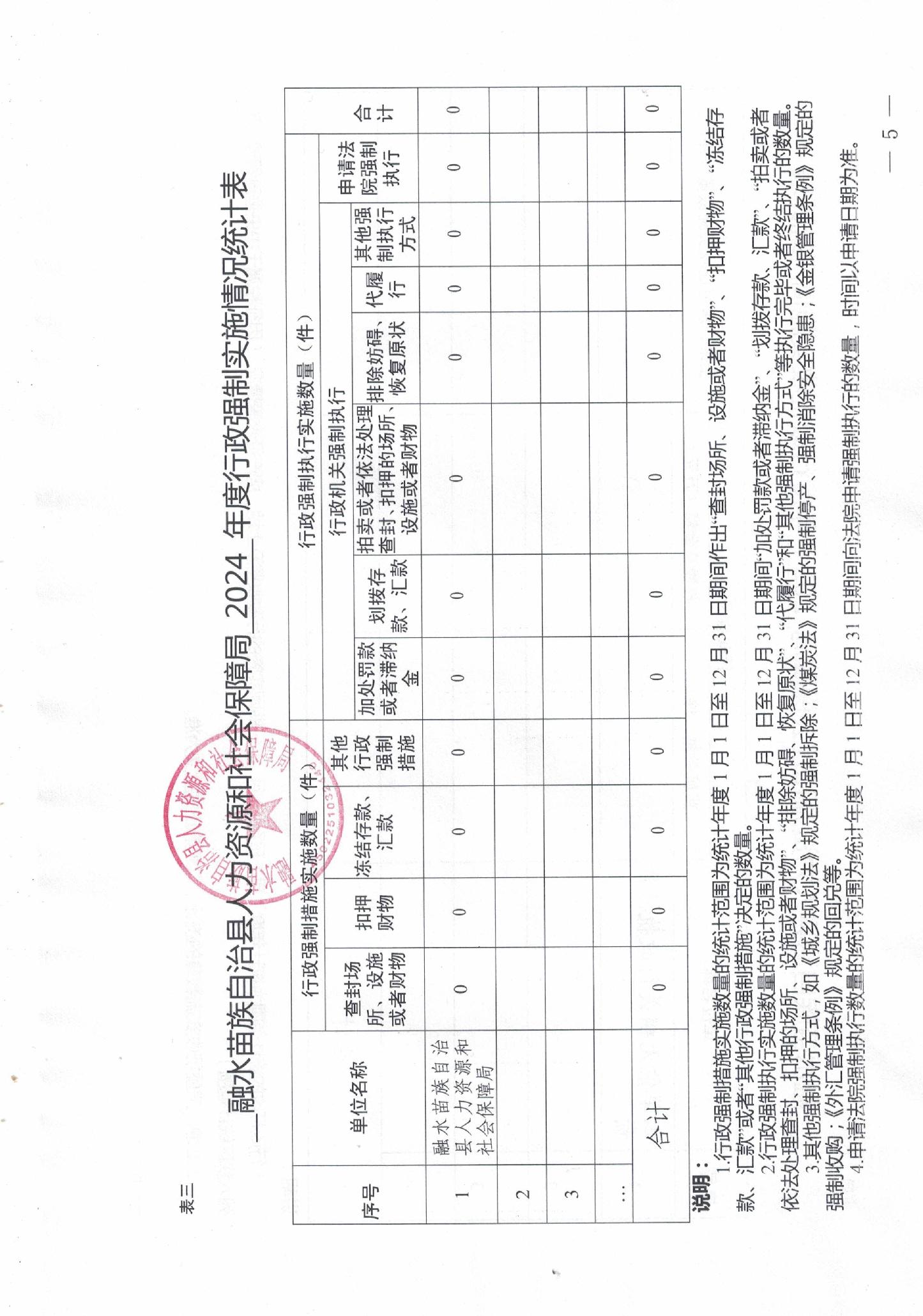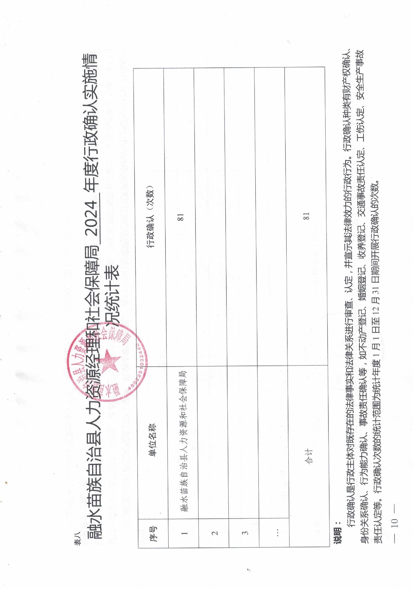 融水苗族自治县人力资源和社会保障局2024年度行政执法数据统计年报表