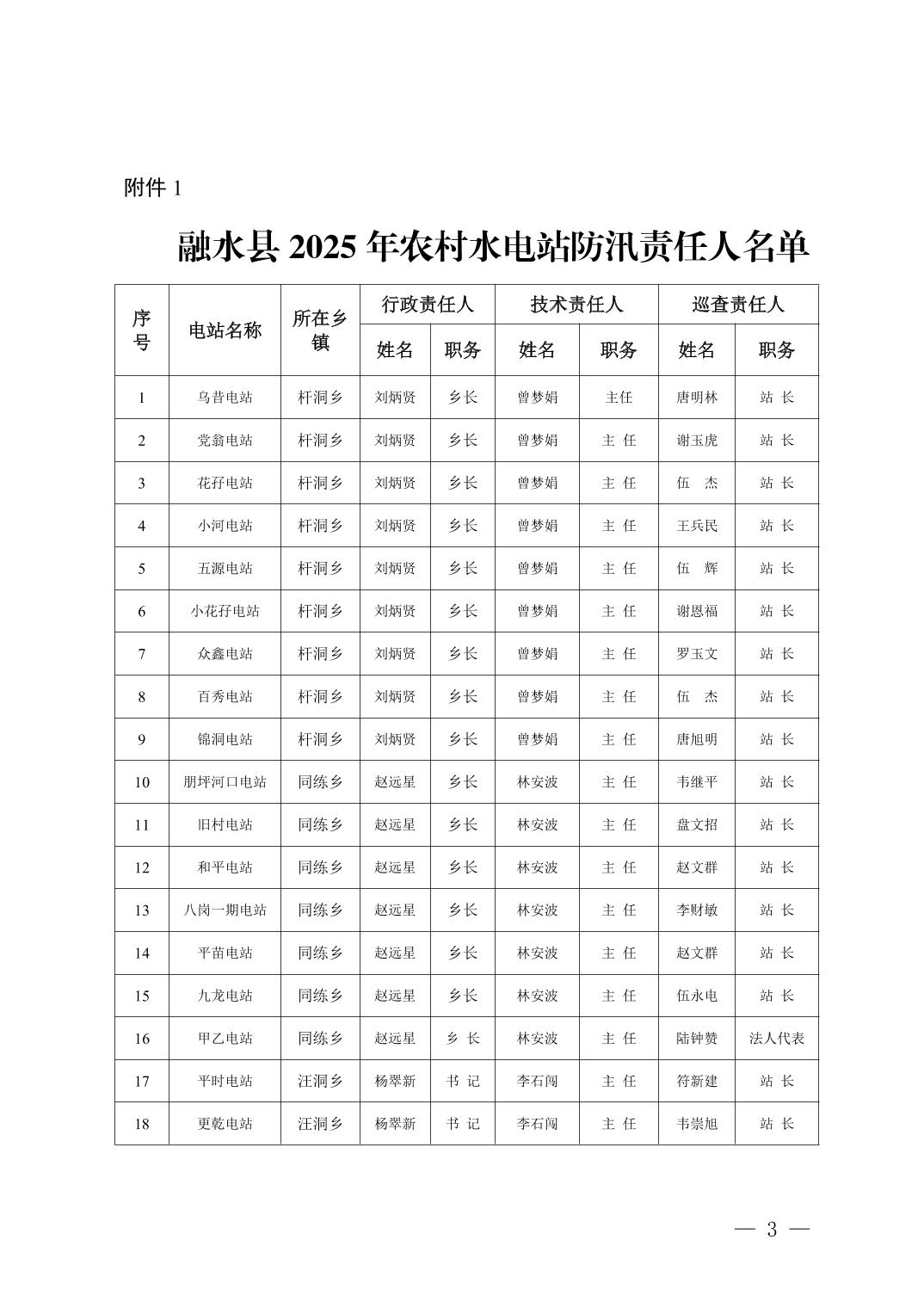融安全应急委〔2025〕2号 关于2025年防汛行政责任人的通报