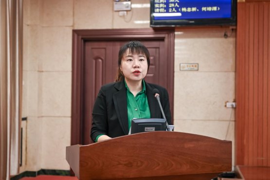 图为自治县人民政府副县长沙昱彤作有关专项工作报告