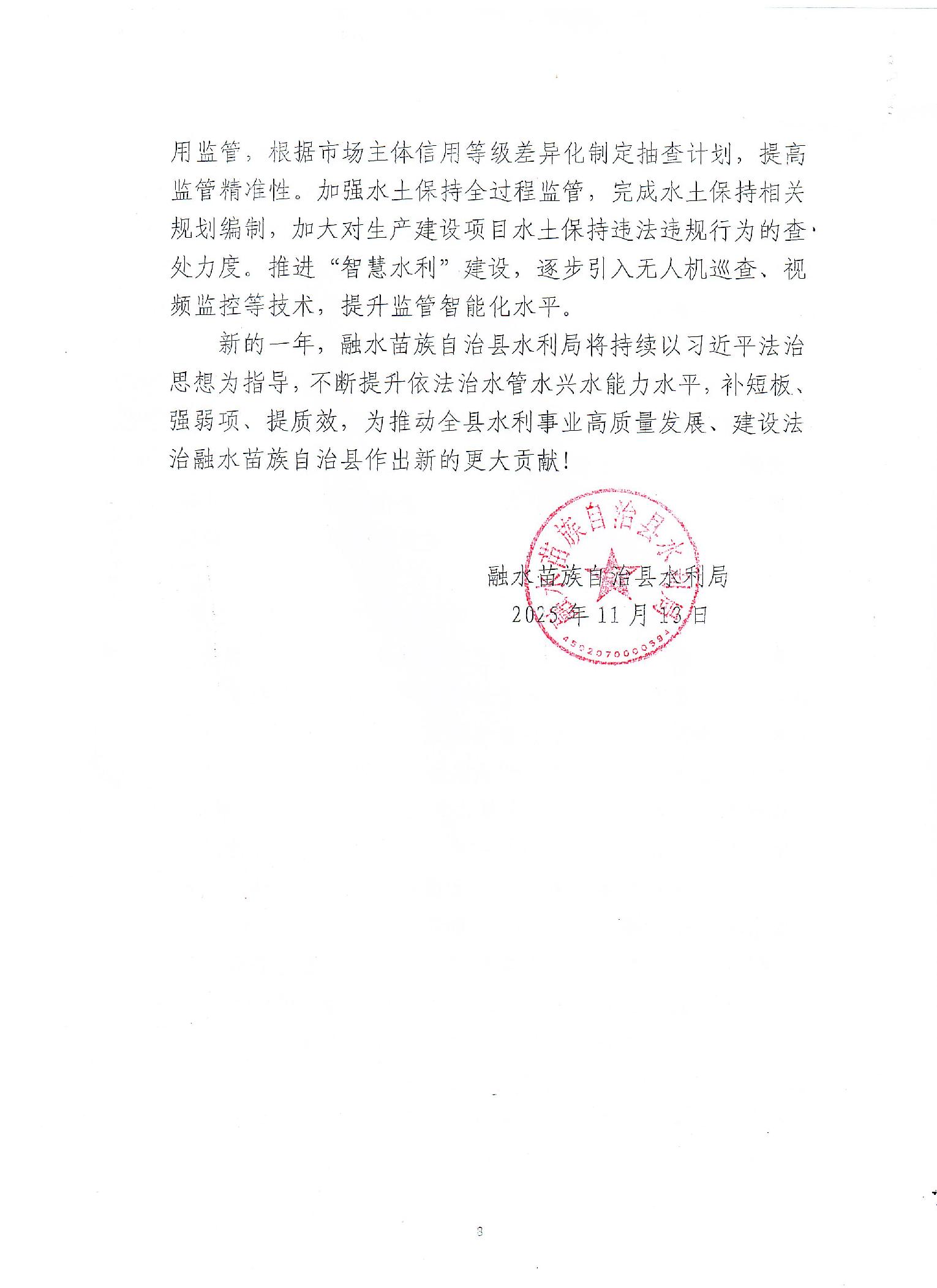 融水苗族自治县水利局2025年法治政府建设工作报告