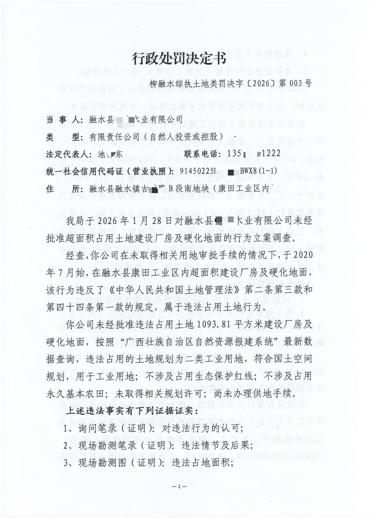 柳融水综执土地类罚决字〔2026〕第003号
