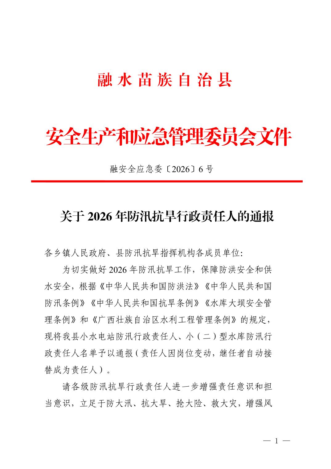 融安全应急委〔2026〕6号--关于2026年防汛行政责任人的通报