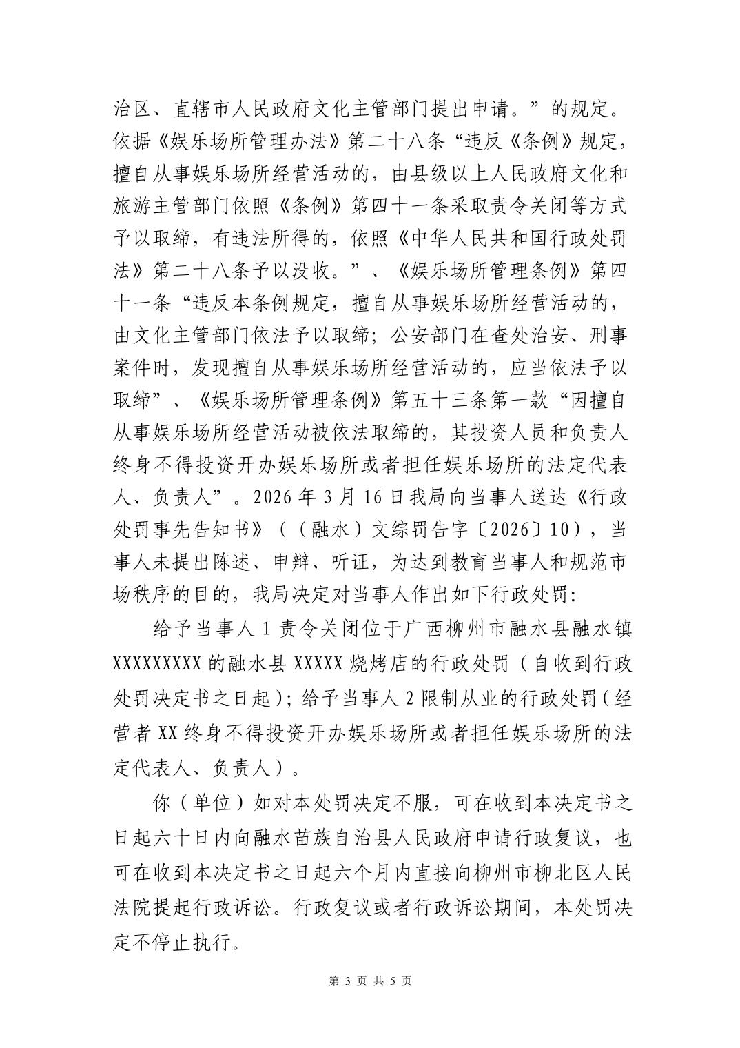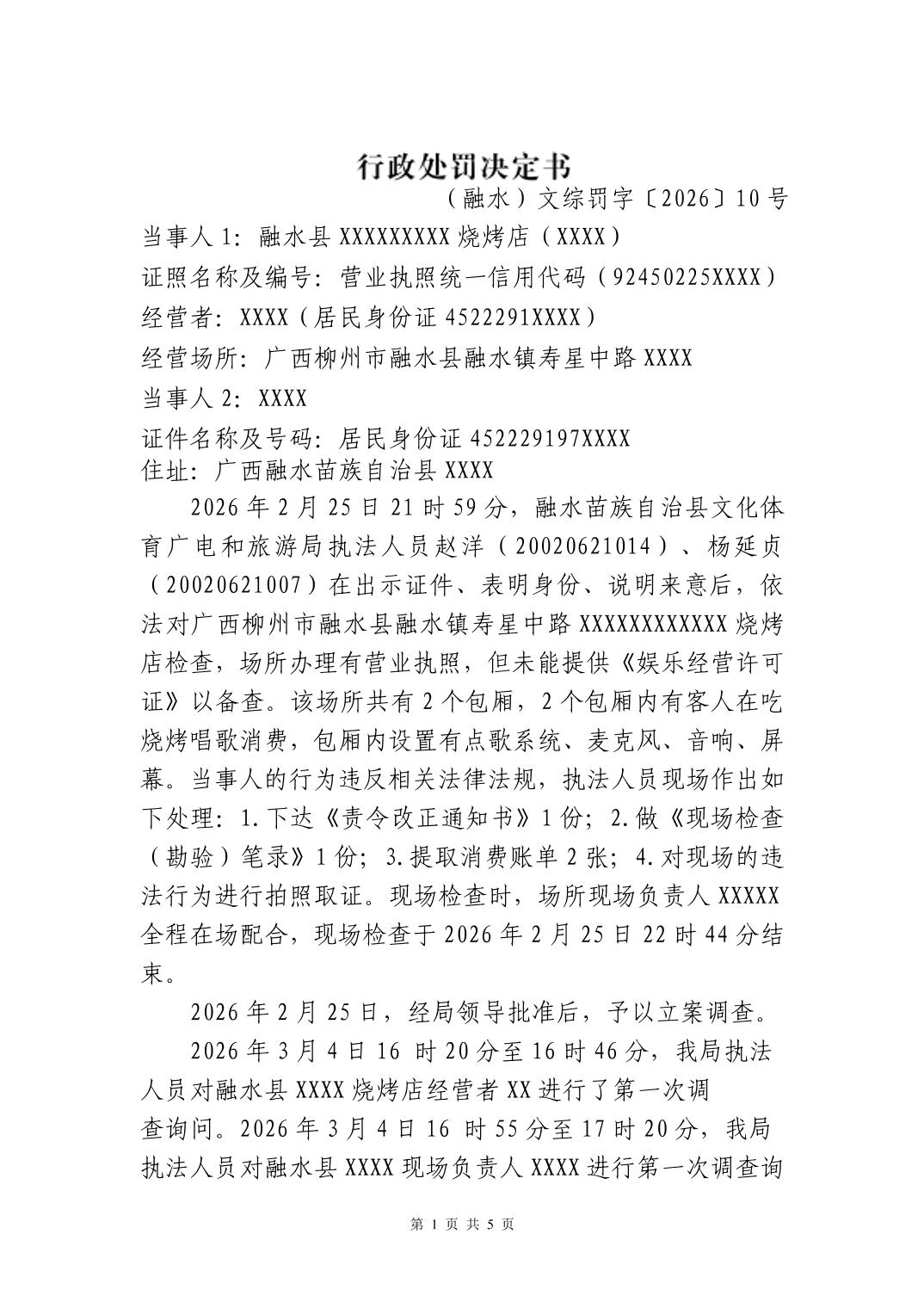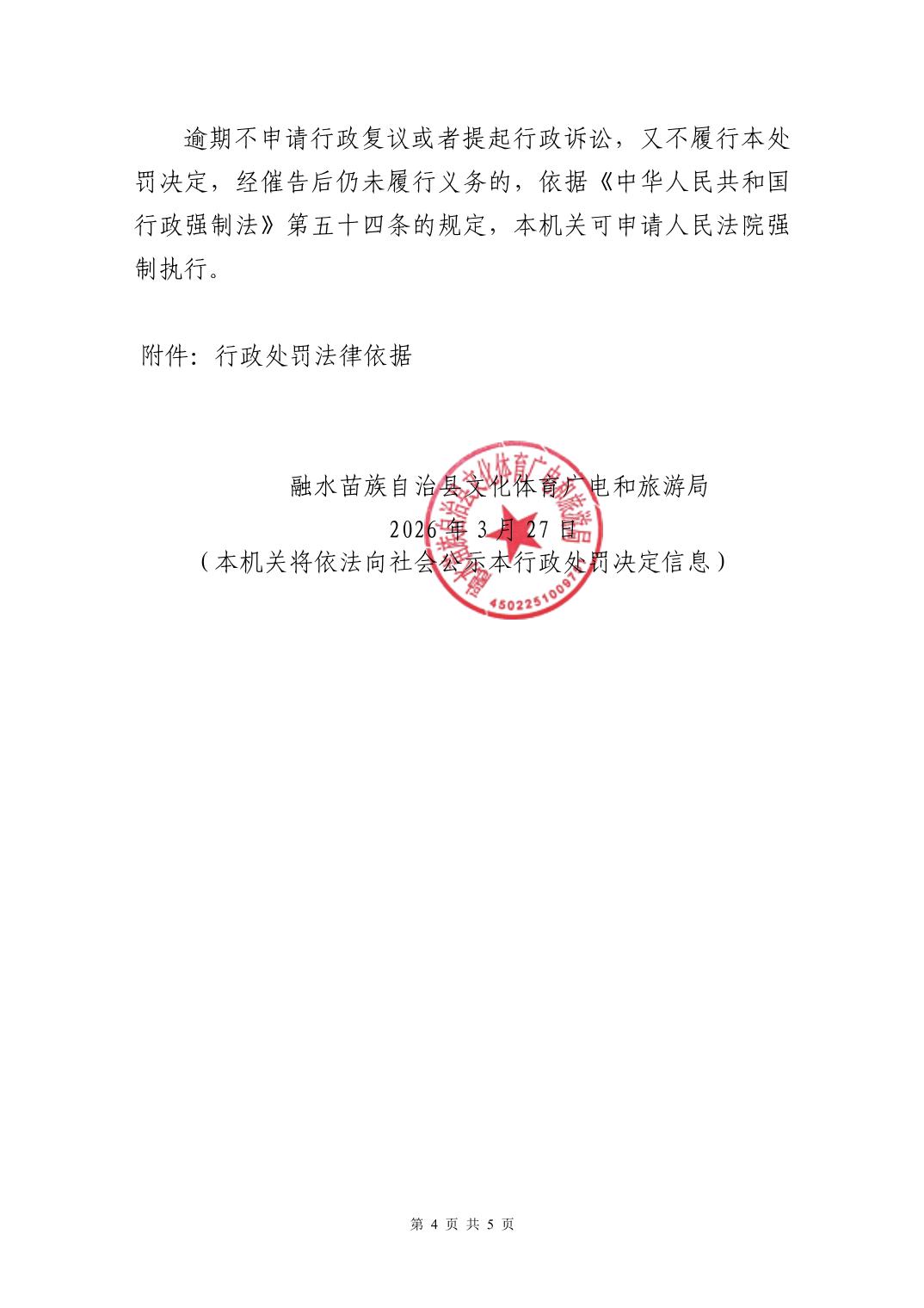 行政处罚决定书 - (融水)文综罚字〔2026〕10 号