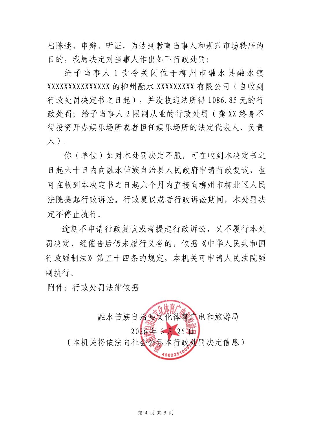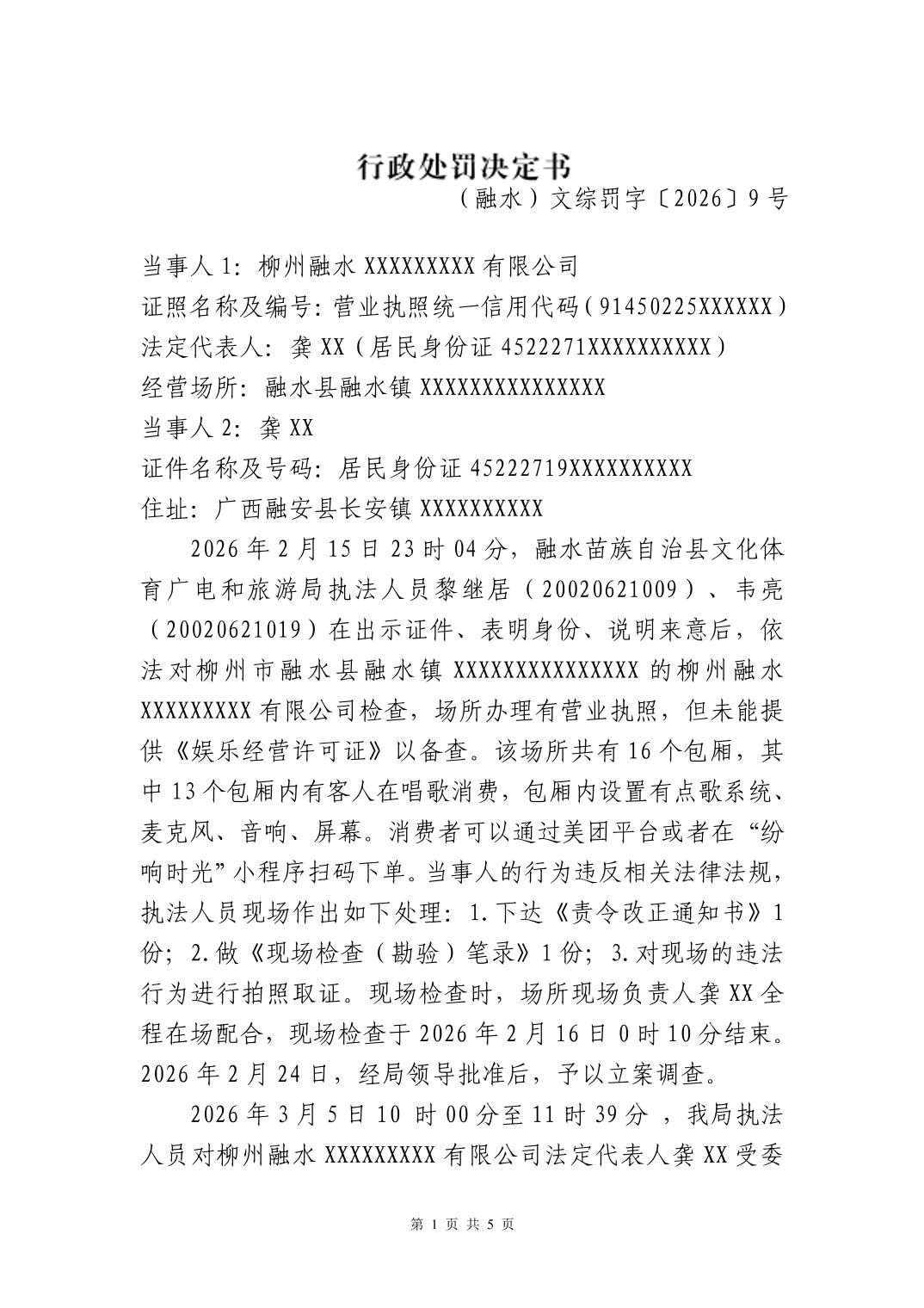 行政处罚决定书 - (融水)文综罚字〔2026〕9号