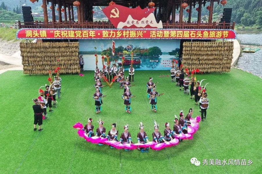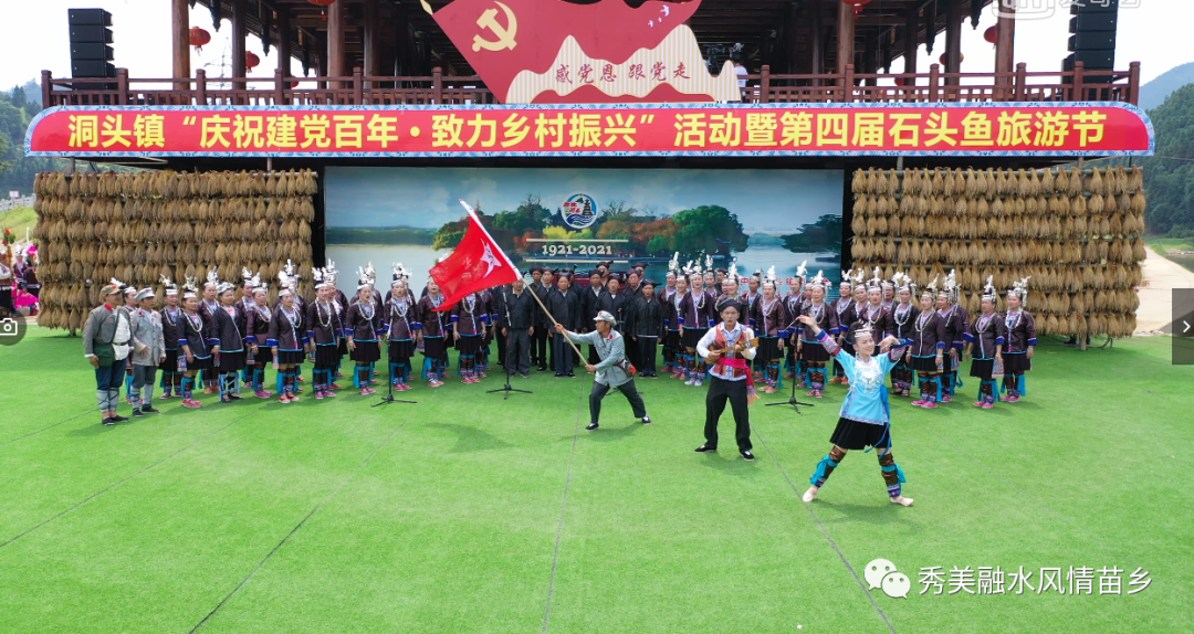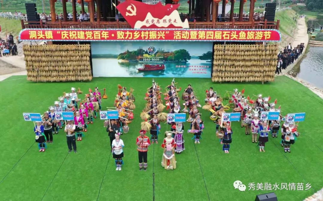 为加快推进旅游产业发展,着力提升农村旅游产业发展能力,巩固脱贫攻坚成果,促进招商引资,推进乡村振兴。6月19日,融水苗族自治县洞头镇举办的“庆祝建党百年 致力乡村振兴”活动暨第四届石头鱼旅游节活动。来自县内外近5000多各族群众和游客欢聚一堂,共同欢庆该镇一年一度的特色民族节日。