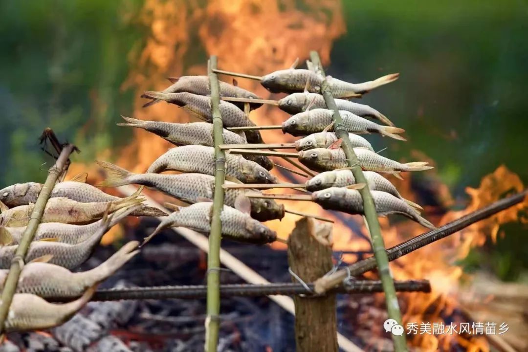 石头鱼是洞头镇苗族侗族特色美食文化的代表,主要食材是稻田禾花鱼,辅料有油、盐、葱、姜、蒜、辣椒等,加入当地鱼腥草、蚂蚁菜、黄花菜、野芹等野菜。水烧开后放辅料,把已烤好的禾花鱼、野菜放入锅中,然后放入烧红的石头,滚沸的野菜石头鱼顿时香气袭人。