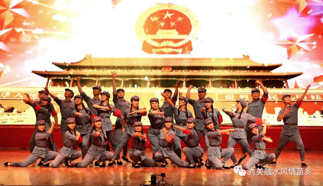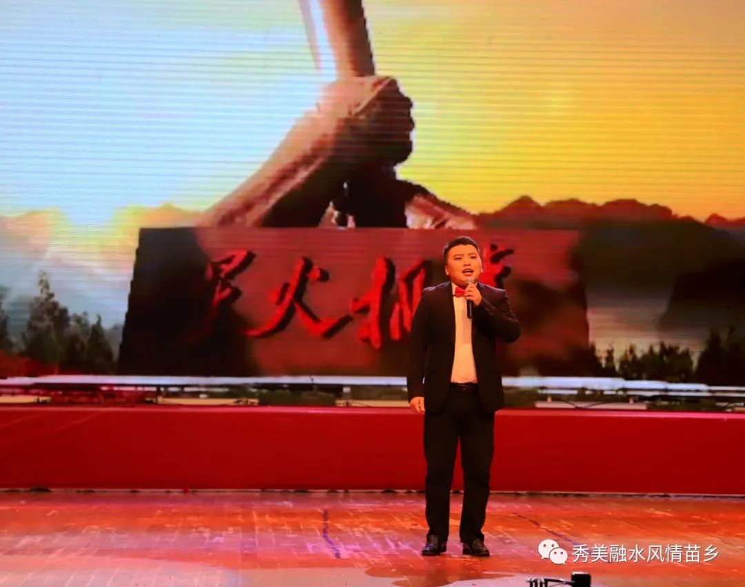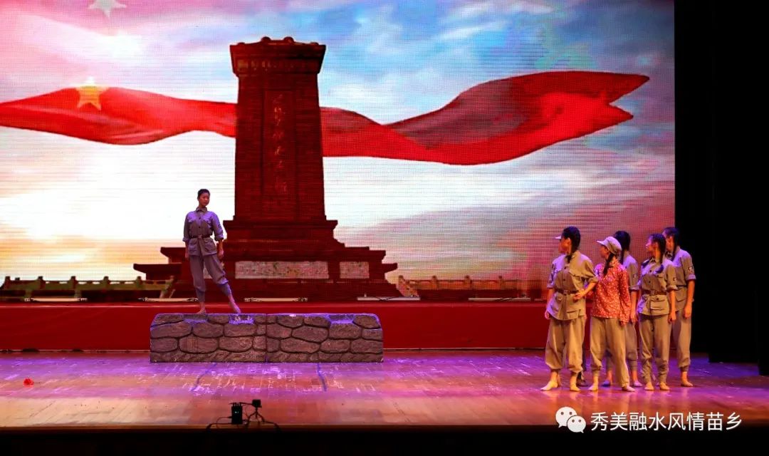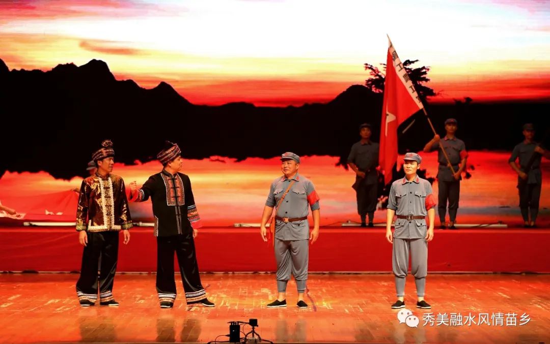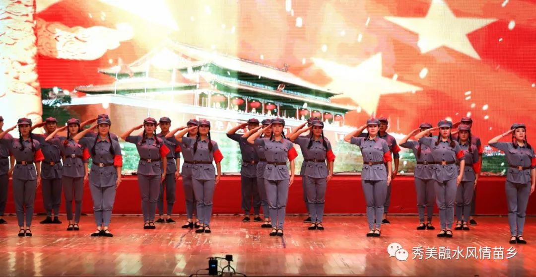 舞蹈《国旗下成长》、诗朗诵《中国力量》、舞蹈《半条被子》以及具有融水民族特色的歌伴舞《赶坡会》、小品《大苗山小村官》、苗族舞蹈《一个都不能少》等一个个精彩节目轮番上演。整场晚会融合歌舞、朗诵、合唱、小品等形式,致敬革命先烈、讴歌平凡英雄、回望奋斗历程、感念党的恩情,彰显了融水人民万众一心、砥砺奋进,共谱最美华章的决心。演出在全体演员和现场观众齐声合唱《没有共产党就没有新中国》雄壮的歌声中落下帷幕。