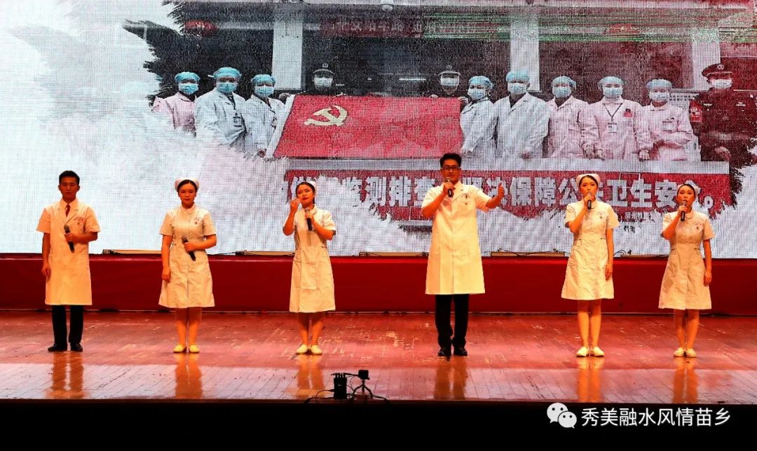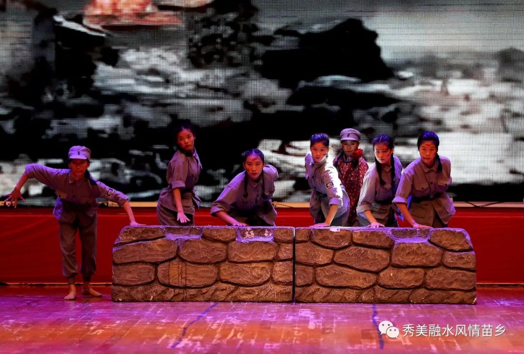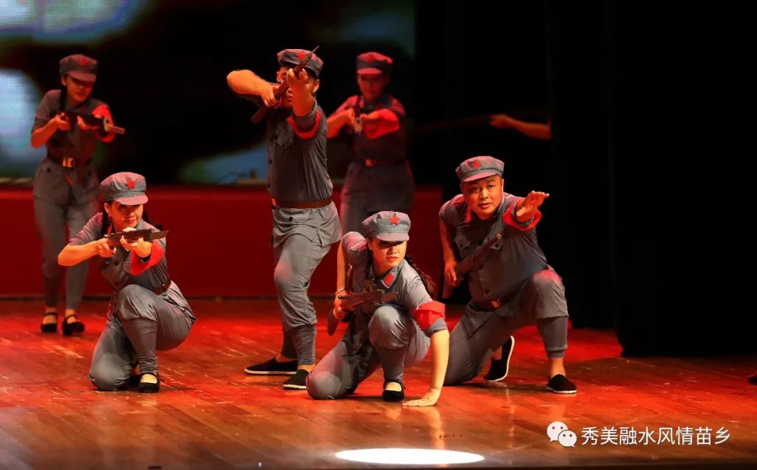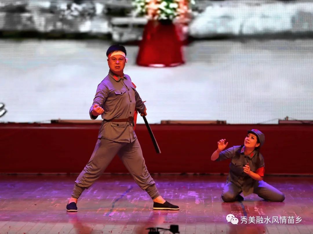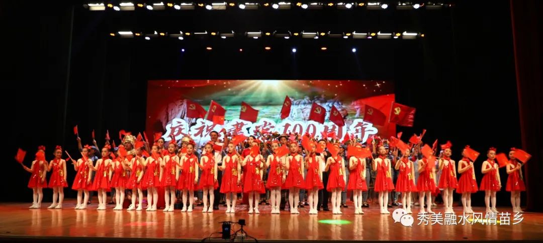 舞蹈《国旗下成长》、诗朗诵《中国力量》、舞蹈《半条被子》以及具有融水民族特色的歌伴舞《赶坡会》、小品《大苗山小村官》、苗族舞蹈《一个都不能少》等一个个精彩节目轮番上演。整场晚会融合歌舞、朗诵、合唱、小品等形式,致敬革命先烈、讴歌平凡英雄、回望奋斗历程、感念党的恩情,彰显了融水人民万众一心、砥砺奋进,共谱最美华章的决心。演出在全体演员和现场观众齐声合唱《没有共产党就没有新中国》雄壮的歌声中落下帷幕。