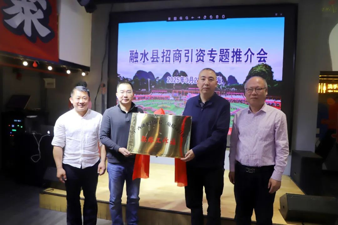 周峰在会上介绍,融水近年来各项事业取得长足发展,迎来了政策叠加、加快发展的关键时期,交通基础设施持续完善,已经融入柳州、桂林一小时经济圈,为各位企业家了解融水、投资融水提供了便利、创造了条件。融水山水秀丽,生态环境优美,竹木和旅游资源十分丰富,境内有元宝山国家森林公园和九万山国家级自然保护区,森林覆盖率达75.36%,全县共有国家AAAA级景区5个、AAA级景区6个,是国家全域旅游示范区、全国民族团结进步创建示范县、中国天然氧吧、中国香杉家居板材之乡。他表示,热烈欢迎各位企业家到融水考察、洽谈、合作,在这块沃土上投资兴业,携手同行、共赢未来。会上,还举行了广西融水驻长三角招商引资联络工作站揭牌仪式,标志着融水与上海柳州商会搭建了沟通、交流、合作的桥梁和纽带。
