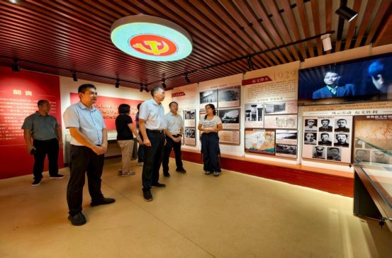 图为在三防镇红七军纪念馆参观调研(马忠华摄)