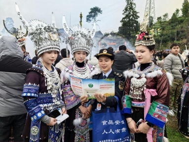 近日,一年一度的安太十三坡如期举行,十三坡作为融水苗族系列坡会群规模较大的坡会之一,参与人数万计以上。坡会现场笙歌阵阵、人头攒动,各族群众身着盛装踩堂,展示最美的自己。为切实维护消费者合法权益,营造安全放心的节日市场环境,融水市场监管局安太市场监管所充分利用坡会期间人员集中、流动性大的特点,在坡会重要区域组织开展了2026年纪念“3·15”国际消费者权益日暨“提升消费品质”主题宣传活动。