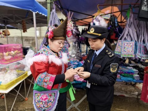 “以前买东西只看价格,今天听了讲解,才知道还要看产品标识、生产日期和厂家等,学到了很多实用知识。”一位正在选购苗绣的村民说道。