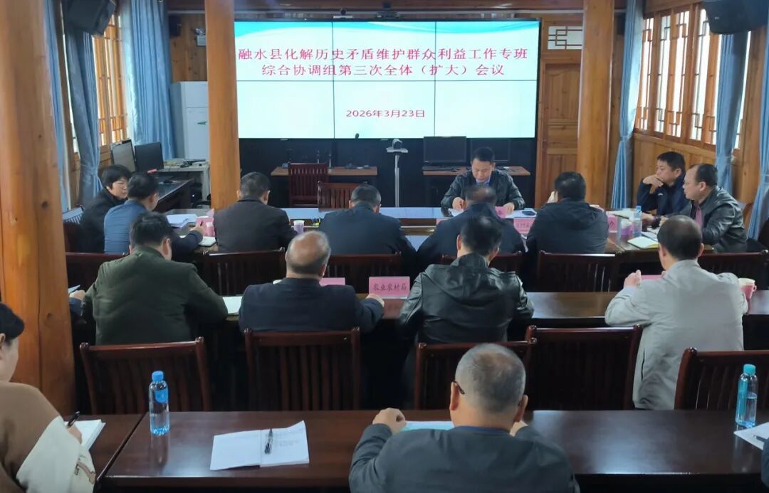 3月23日,融水召开化解历史矛盾维护群众利益工作专班综合协调组第三次全体(扩大)会议。会议传达学习自治区、柳州市及县委、县政府相关会议精神,听取工作汇报并部署下一步任务。