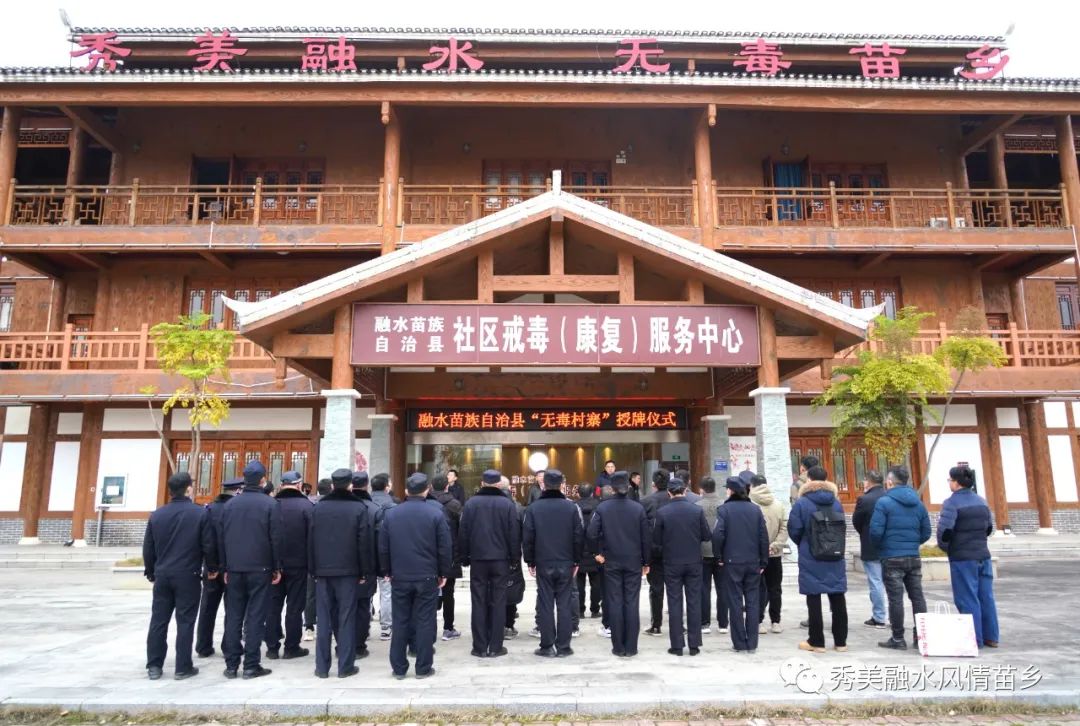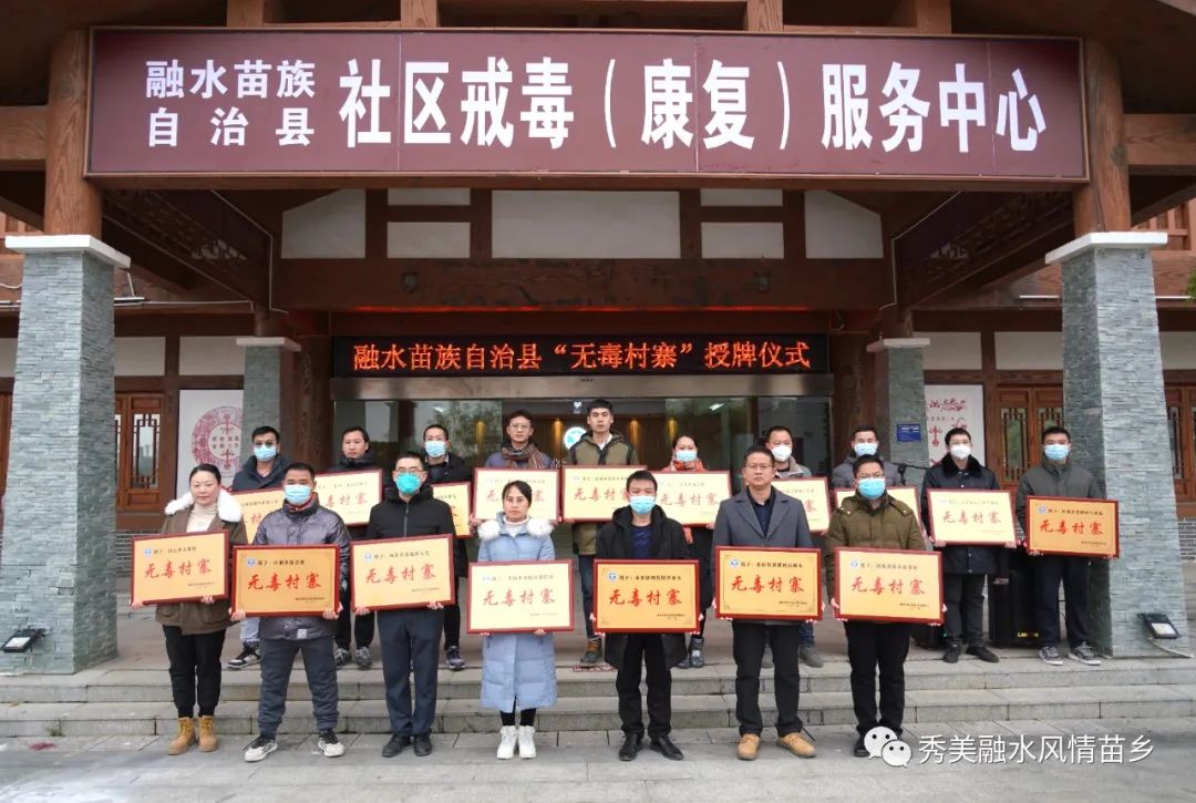 1月17日,融水苗族自治县举行“无毒村寨”授牌仪式,县委常委、政法委书记韦转福,副县长、公安局局长覃建恩出席授牌仪式。