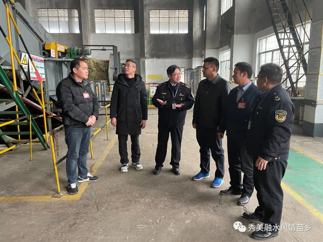 ▲沈江通(右三)带队到广西凤糖融水和睦制糖有限责任公司督导食品安全“两个责任”机制落实情况。