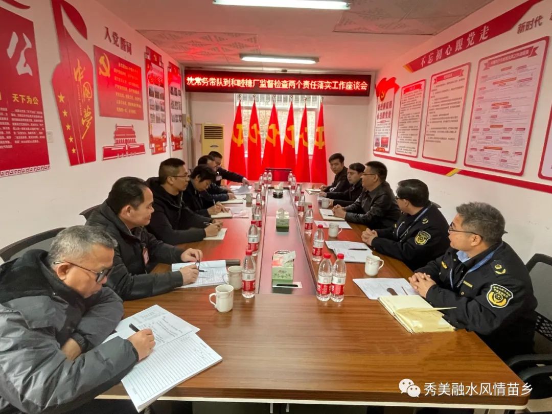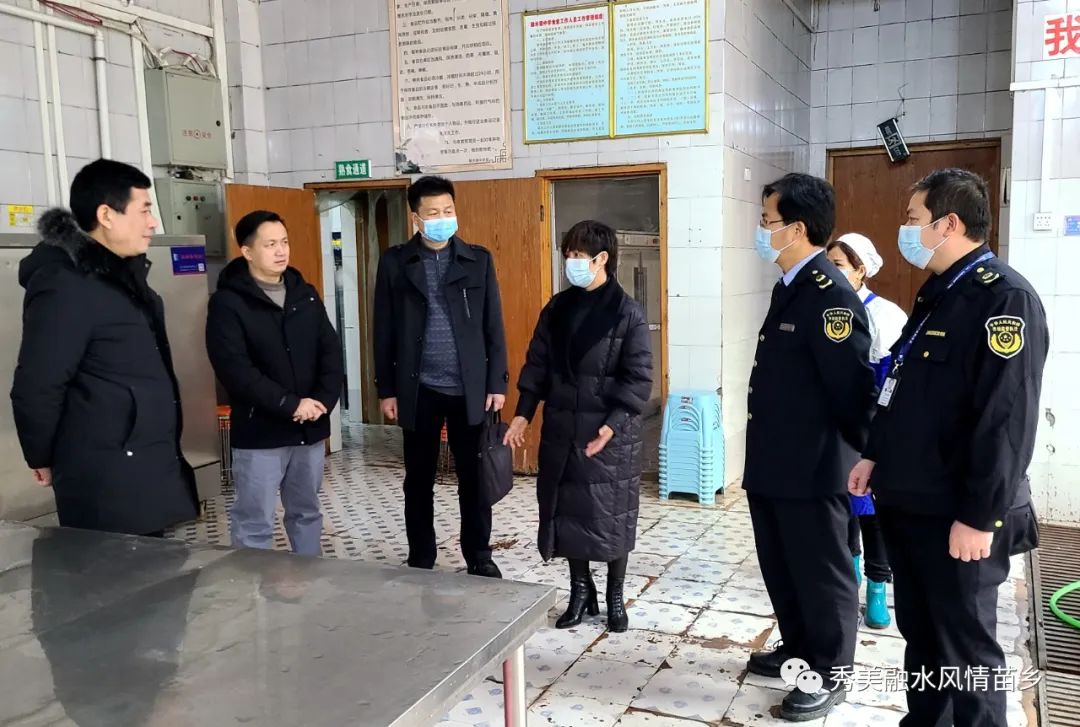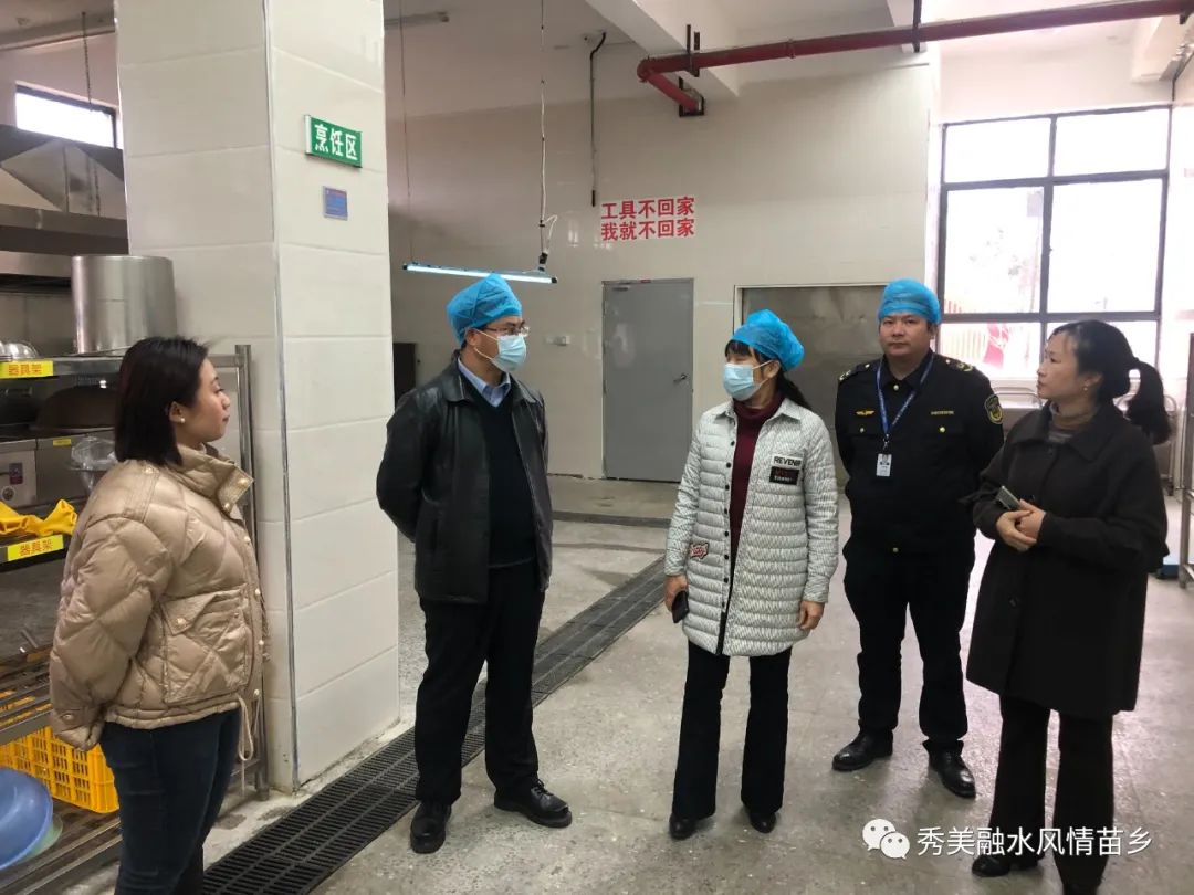 在广西凤糖融水和睦制糖有限责任公司,沈江通一行实地走访了解食品生产经营资质、食品质量、环境卫生、设施设备、管理制度等落实情况,并与企业负责人召开了座谈会。座谈会上,沈江通详细听取了该公司关于落实食品安全主体责任情况汇报,充分肯定广西凤糖融水和睦制糖有限责任公司作为国家农业产业化重点龙头企业对融水经济发展的贡献。他要求,食品生产经营企业要落实好主体责任,严把全链条各环节关口,杜绝问题食品流入市场。要完善食品安全规章制度,严把进货查验、生产过程控制、出厂检验等关键环节,持续加强员工规范化生产,提升食品安全管理水平,强化食品安全应急处置,全力保障广大群众健康安全。和睦镇党委政府要落实好属地管理责任,主要负责人要牵头抓好谋篇布局,各级包保干部要全力推进食品安全“两个责任”抓细抓实,压实属地管理责任和企业主体责任。和睦镇、县直各有关部门要高效联动,注重监管与服务并重,对食品生产企业积极予以指导帮助,为企业排忧解难,助推县域经济持续健康发展。吕素华带队前往县中心幼儿园、县第一幼儿园、云彩贝贝幼儿园、融水镇中学4所学校督导食品安全落实“两个责任”机制工作。吕素华一行分别听取各学校负责人对落实食品安全责任制情况汇报,现场查阅了校园食堂食品安全相关方案预案及管理制度等材料,了解食品安全总监和食品安全员配备及履职情况,并对进货查验记录、从业人员健康管理、场所环境卫生,餐饮器具清洁消毒和落实“日管控、周排查、月调度”机制等工作进行督导。▲吕素华(前排右三)带队在融水镇中学督导食品安全落实“两个责任”机制工作