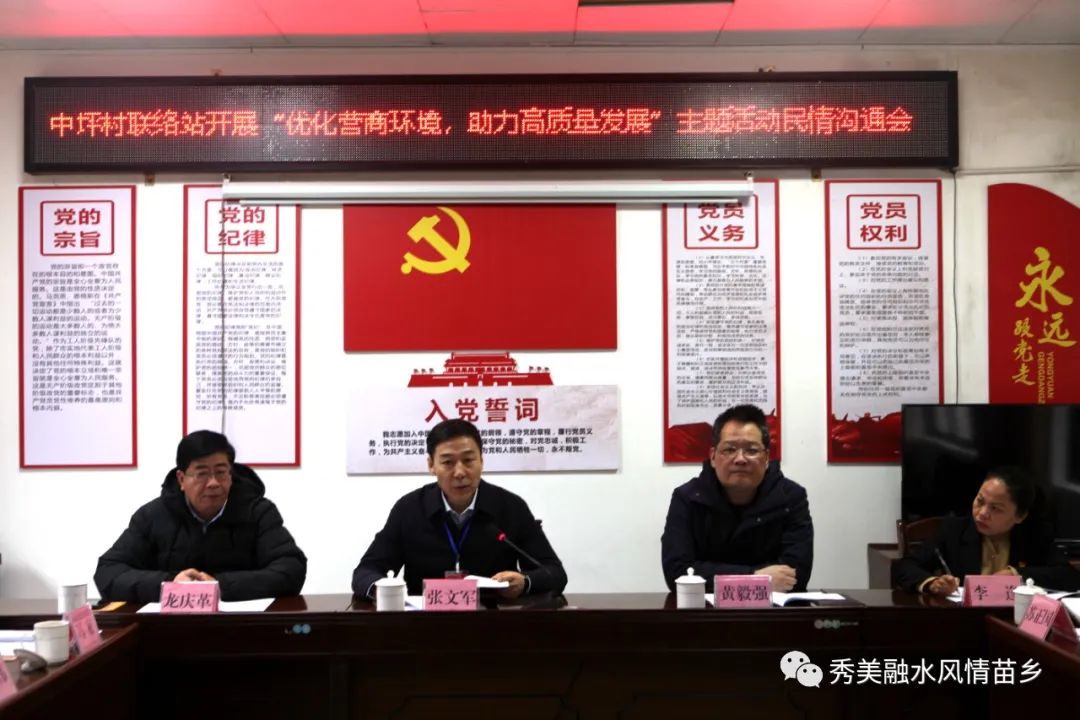 11月15日,自治区人大代表、自治区党委委员、自治区自然资源厅厅长张文军到融水苗族自治县香粉乡中坪村人大代表联络站,参加“优化营商环境,助力高质量发展”主题民情沟通会。