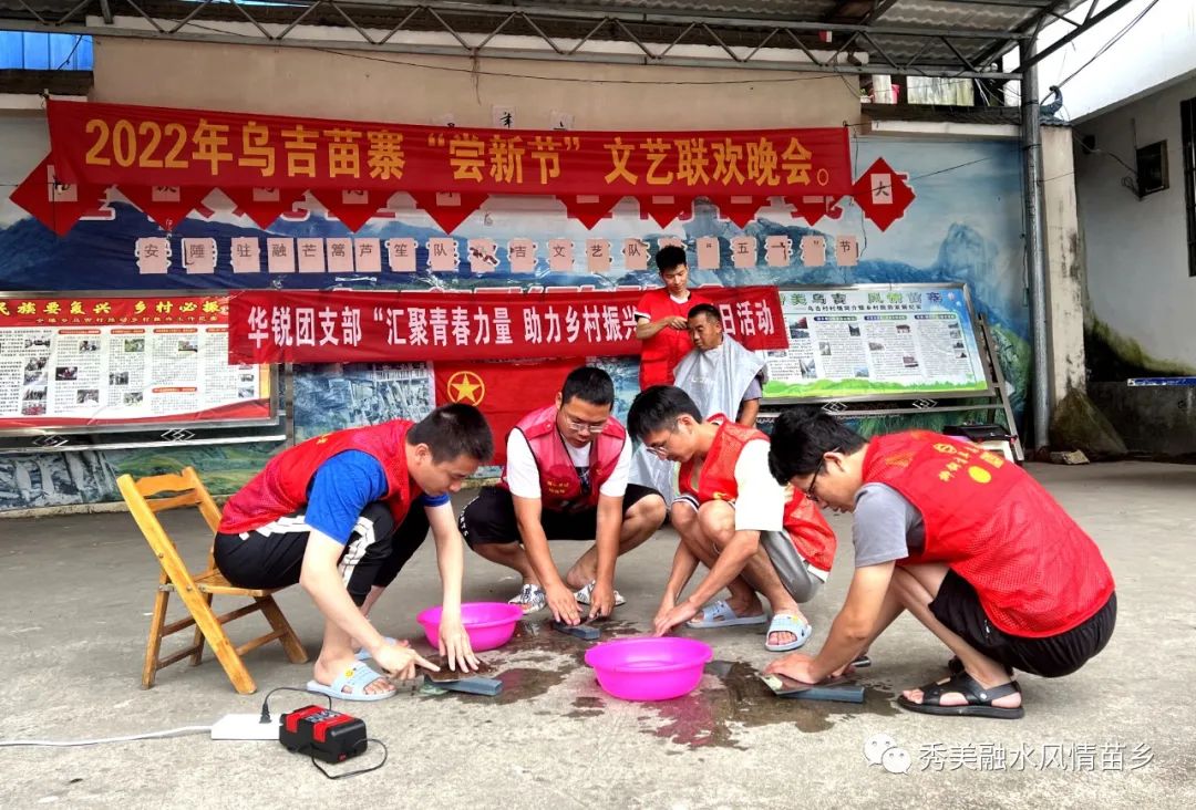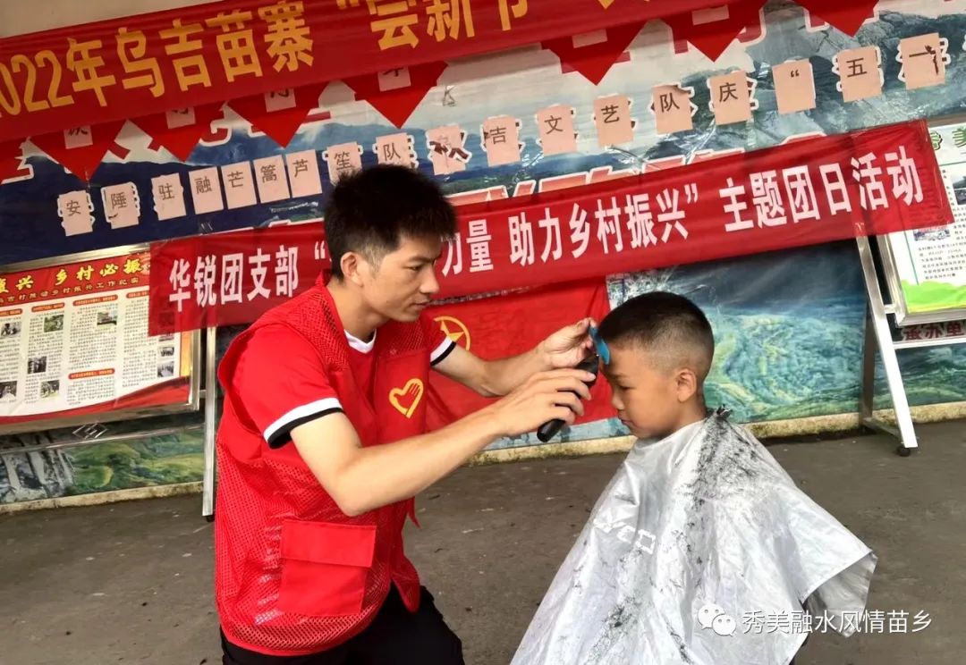 近日,融水苗族自治县安陲乡乌吉村来了一群红衣小伙子......他们分散在罗汉果园、村民家中、村活动中心以及村党群服务中心,点花、磨刀、理发......没有他们不会干的事。他们就是华锐设计公司团支部的青年团员。此刻,他们正与乌吉村团支部联合开展“汇聚青春力量,助力乡村振兴”志愿服务活动。