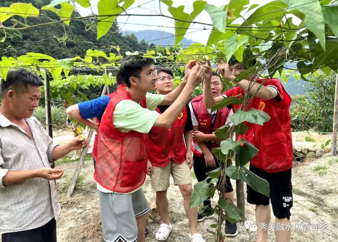 在乌吉村柳钢青年共建乡村振兴同心林——乌吉村罗汉果种植基地,服务队员们正在村民的指导下小心翼翼地为每朵花授粉。2022年初,在柳钢集团团委的大力支持下,柳钢集团共青团以“团支部+帮扶户”联合承包、结对共建形式,共动员征集柳钢56个基层团支部3224名团员青年参与,共计捐赠了5.6万元资金用于罗汉果产业发展。不仅建设硬化了800米产业路,极大促进了罗汉果产业的发展,还直接带动乌吉村实现了102亩种植规模的发展目标,为群众增收致富提供了保障。