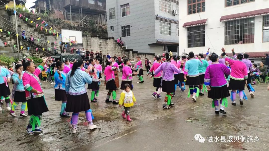 滚贝侗族乡各行政村妇女们穿着少数民族服装用不同方式来庆祝“三八”妇女节。