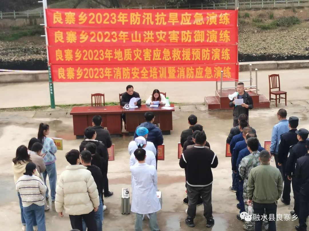 演练现场,总指挥组、监测调查组、应急抢险组、医疗卫生组、治安保卫组、后勤保障组等人员奔赴演练现场,手摇报警器、铜锣、喊话器接连响起。演练人员搀扶受伤群众,带领被困村民向安全地带转移,医务人员第一时间进行伤口包扎,用担架抬起受伤人员撤离、施救,后勤保障组进入安置点检查群众的安置情况和发放生活物品。随后,指挥组宣布“各位乡亲,警报解除,请各自安全回家”预示着本次演练圆满结束。整个实战模拟演练过程中,各单位人员密切配合,应急反应快速到位,人员撤离井然有序,救灾处置及时合理,达到了预期的效果。