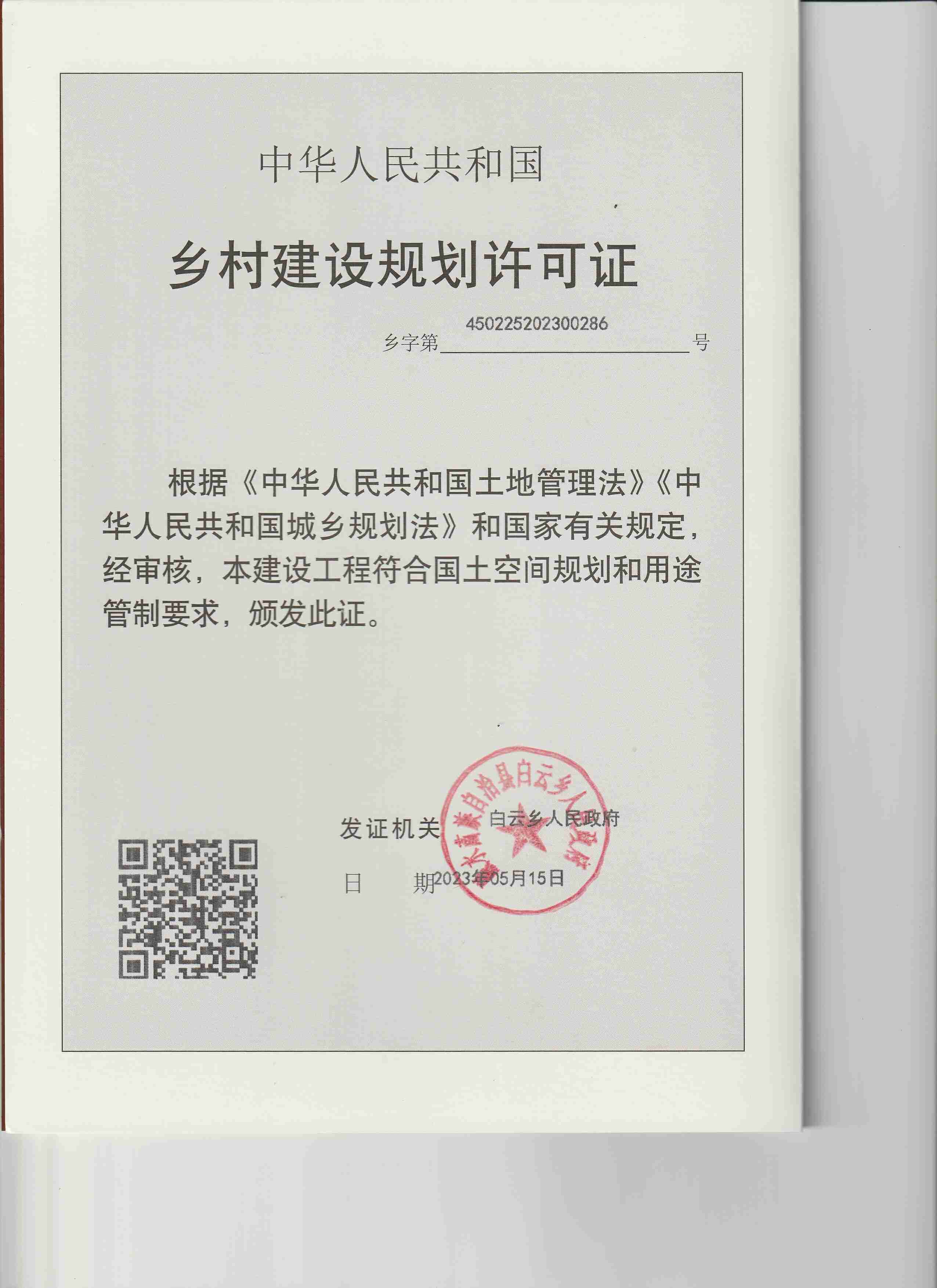 乡村建设规划许可证:(乡字第450225202300286号)公示