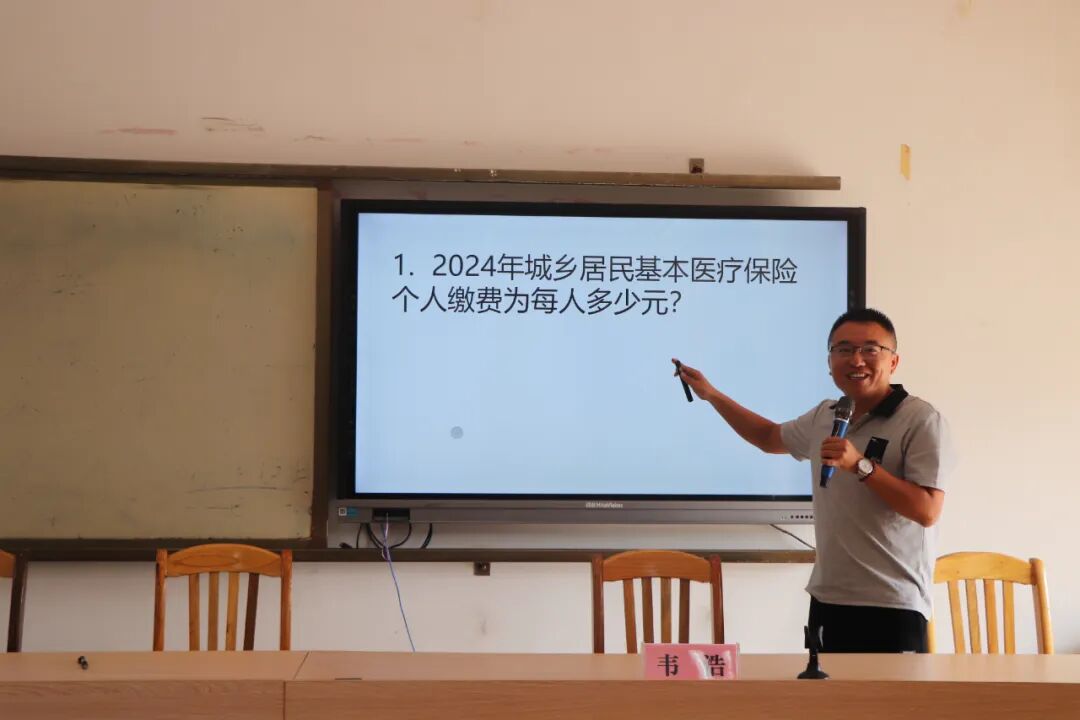 宣讲会上,县医保中心副主任韦浩以现场有奖问答的形式展开2024年城乡居民医疗保险征缴政策宣讲、参保时间、参保缴费标准以及医疗保险待遇等方面做详细讲解。