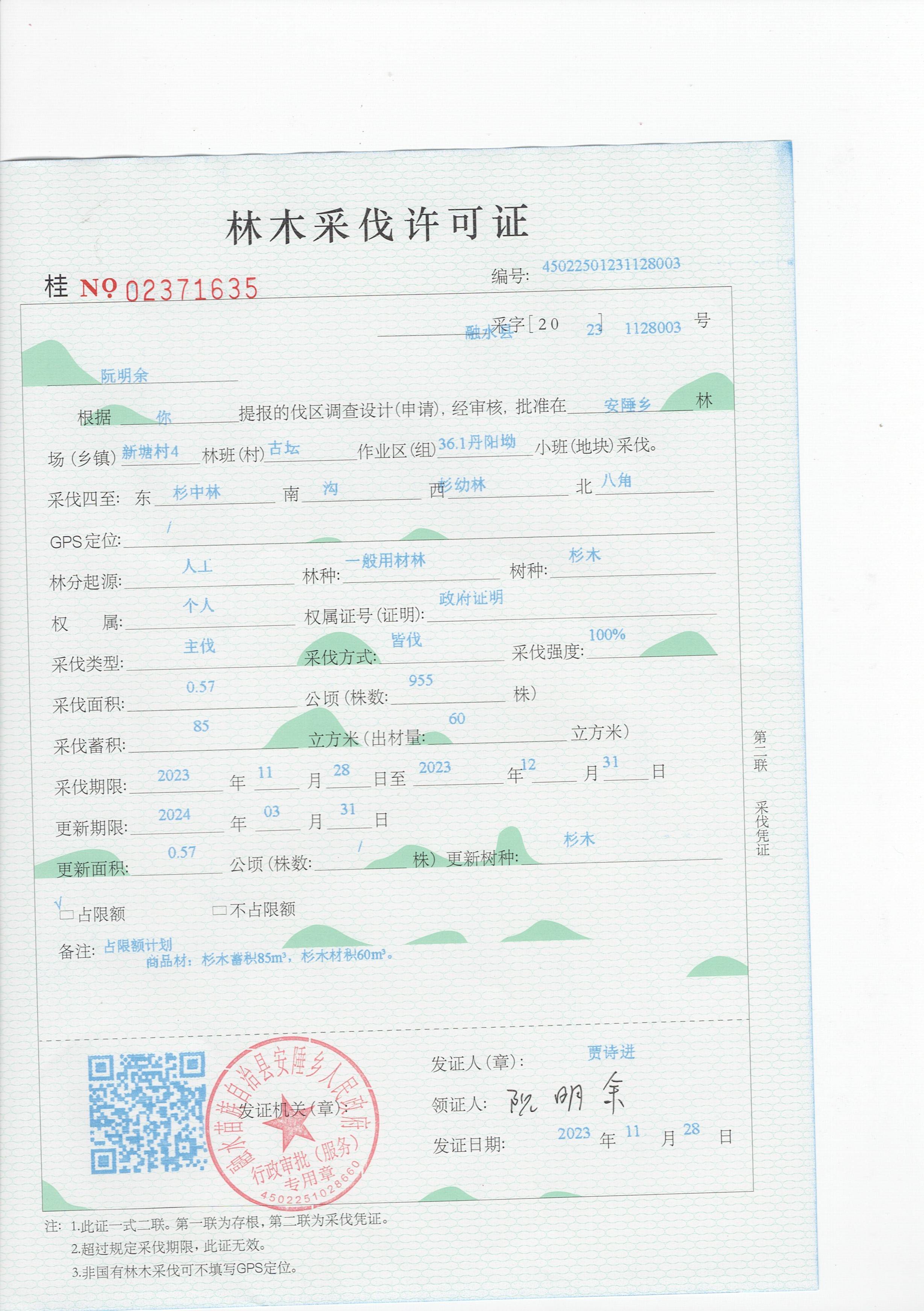 林木采伐许可证:阮明余(桂NO.02371635)公示