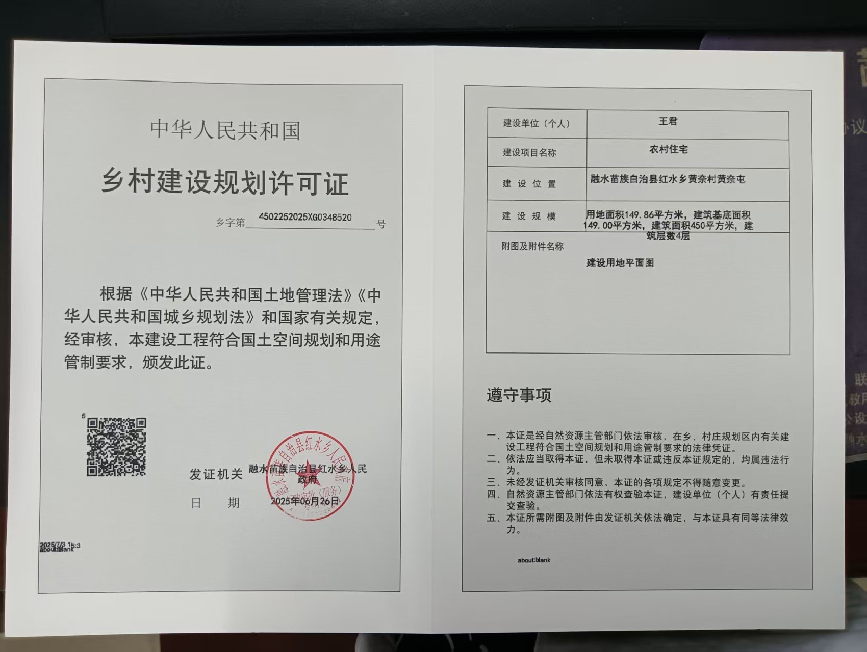 乡村建设规划许可证:(乡字第4502252025XG0348520号)公示