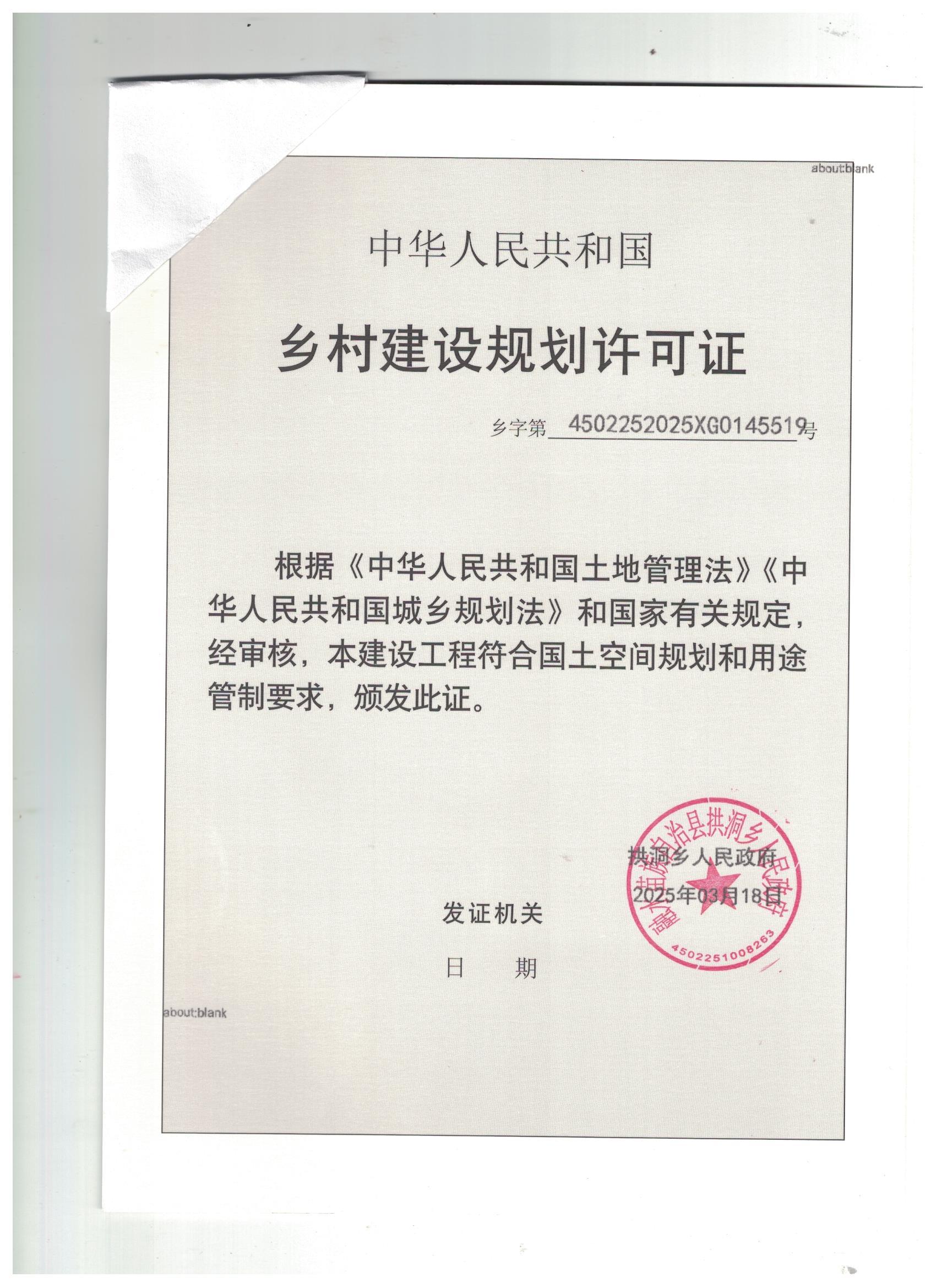 乡村建设规划许可证:乡字第4502252025XG0145519号