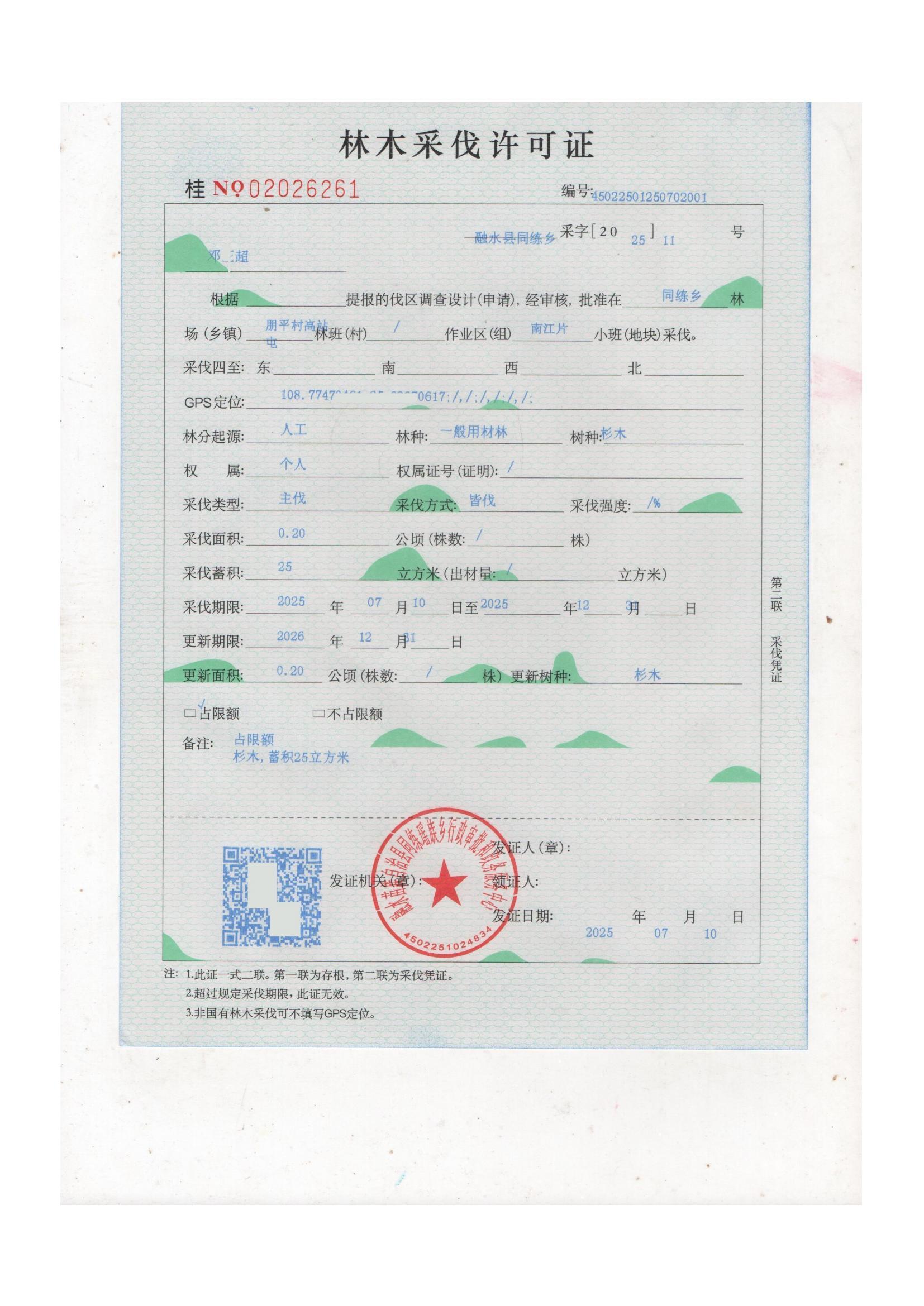 2025.7.10林业采伐许可证(融水县同练乡采字【2025】10号至11号)