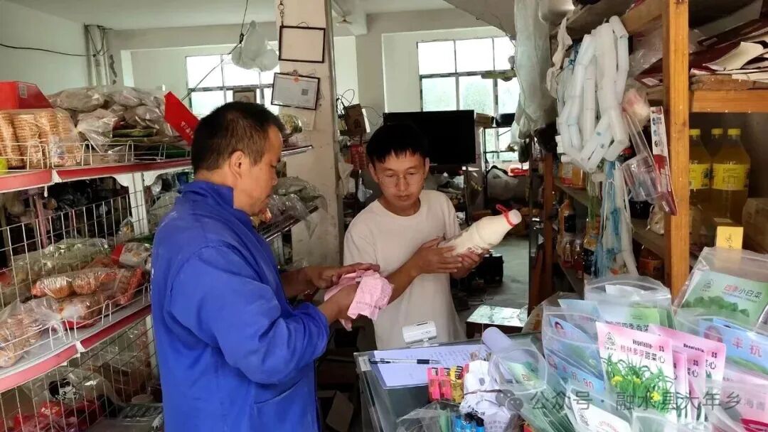 ▲大年乡工作人员到村屯超市现场检查食品安全