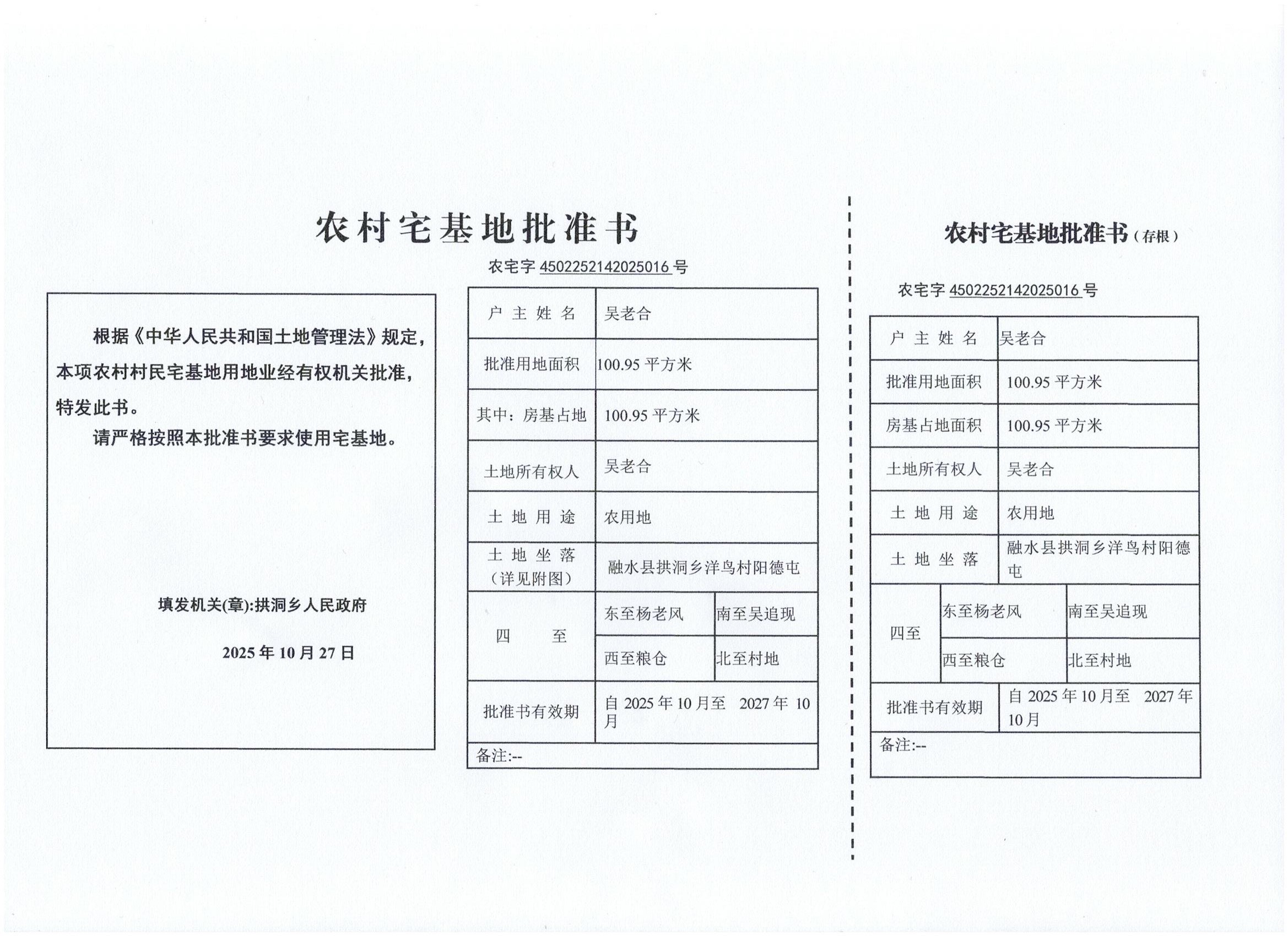乡村建设规划许可证:乡字第4502252025XG0552565号公示