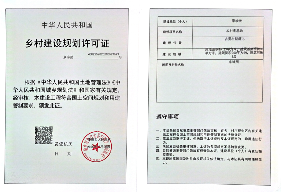 乡村建设规划许可证 乡字4502252025XG591591号