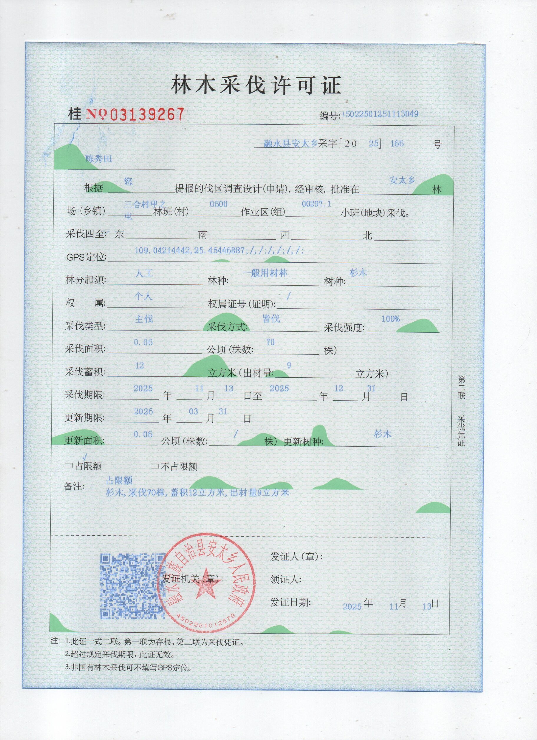 林木采伐许可证:陈秀田(桂NO.03139267)公示