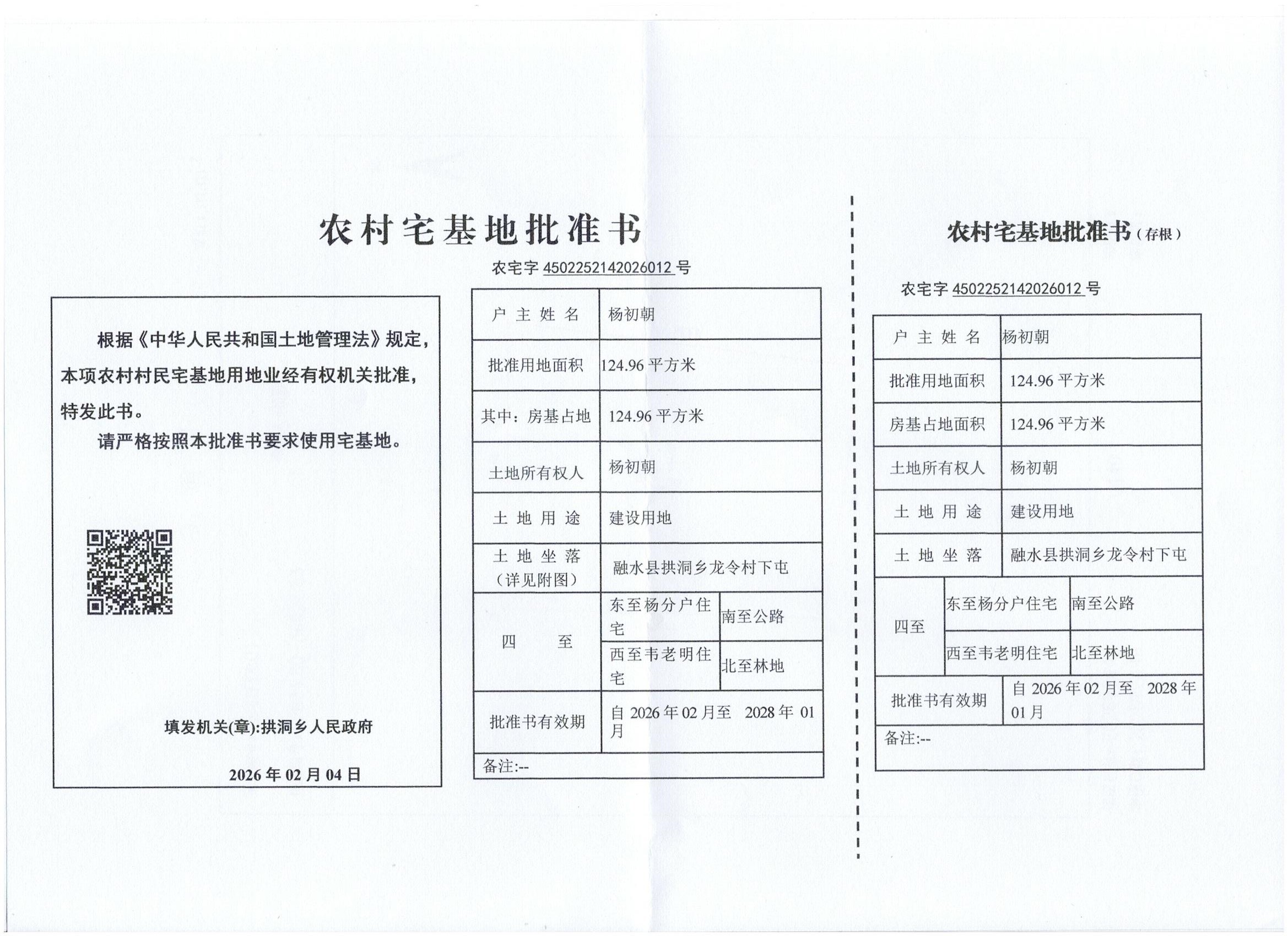 乡村建设规划许可证:乡字第4502252026XG0054643号公示