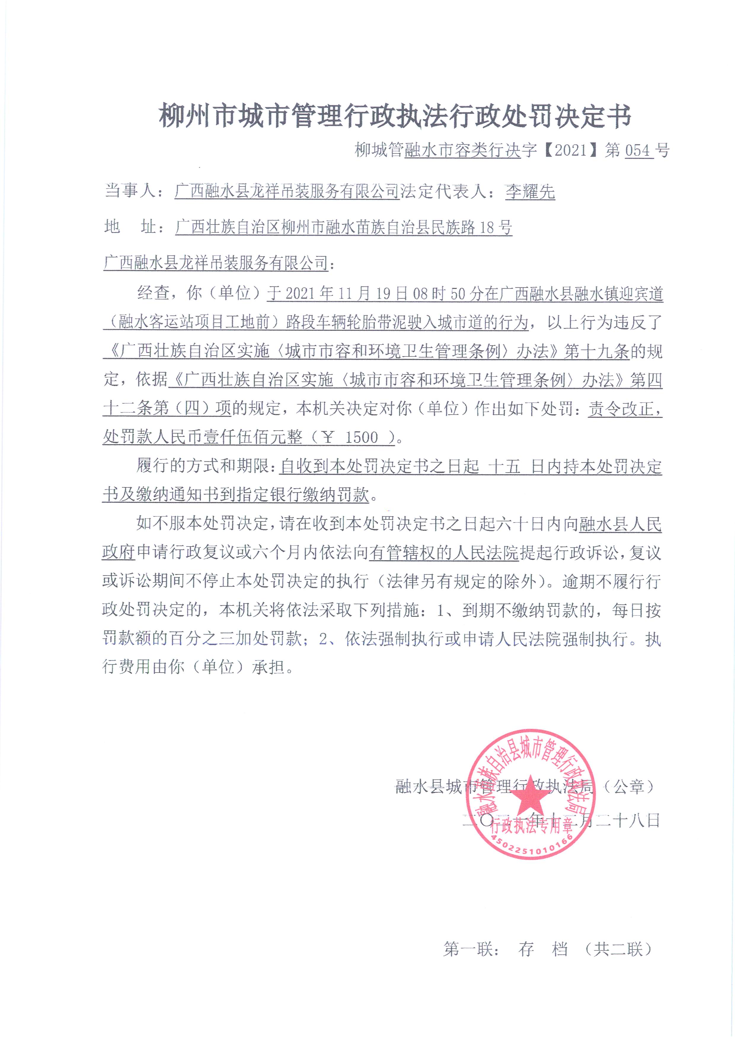 行政处罚决定书(柳城管融水市容类行决字【2021】第054号)