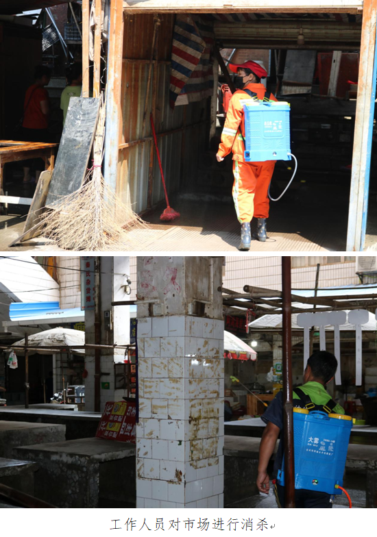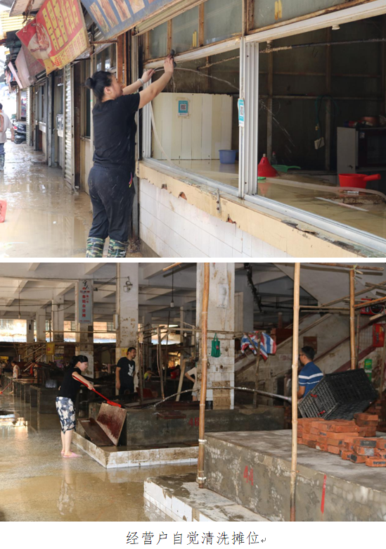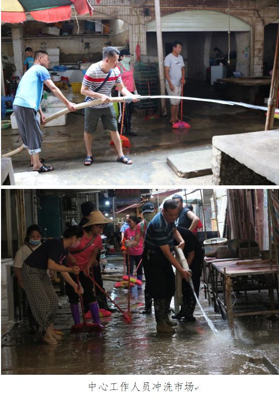 水位逐步回落后,为确保群众能早日恢复正常的生产生活,党员干部发挥模范带头作用,组织工作人员对积水路段及时排水、清淤,市场经营户们纷纷自觉加入清淤的队伍中来,争取尽快恢复正常的生活秩序。