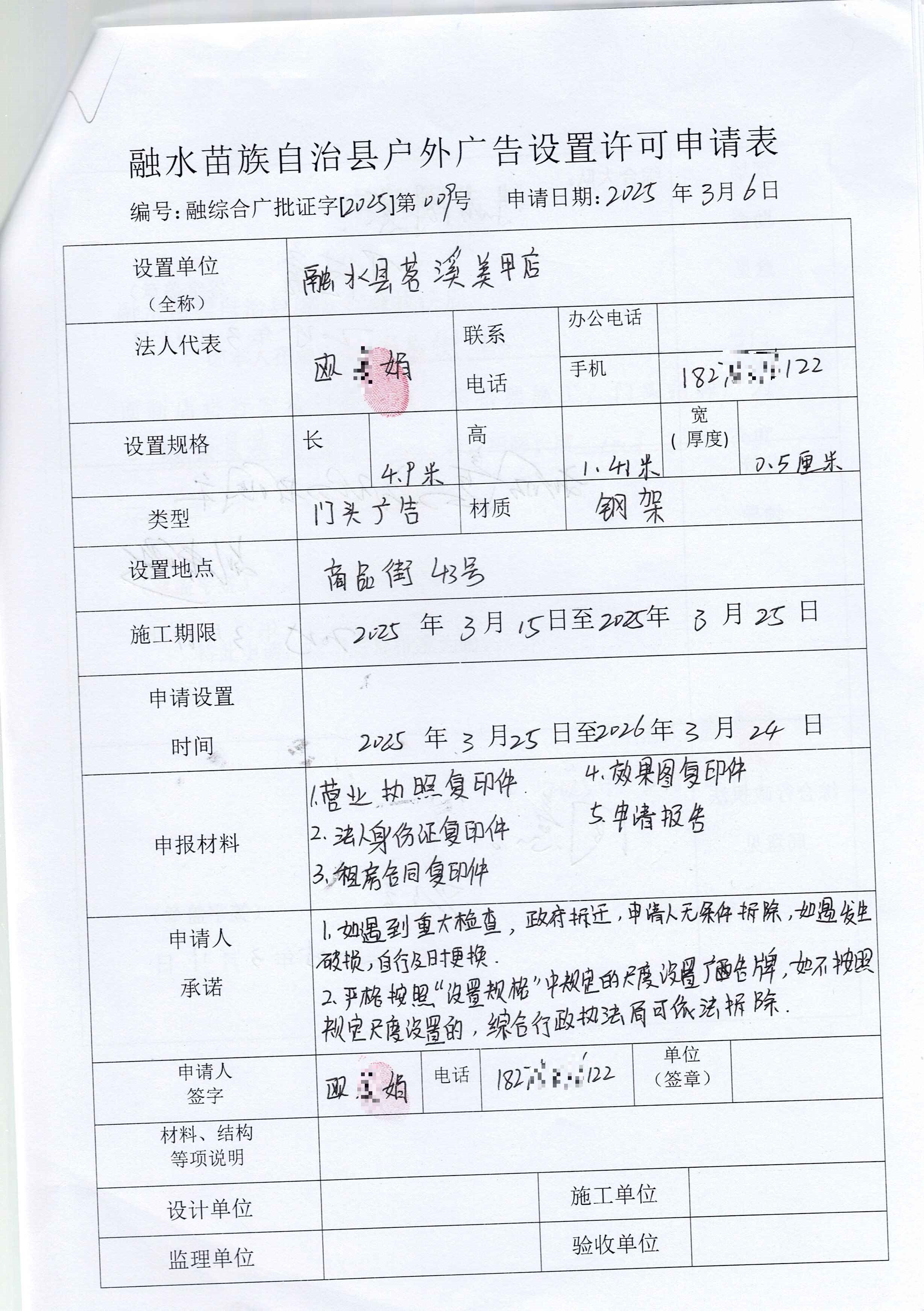 行政审批许可表(融城管许2025009)号受融水县审批局委托事项