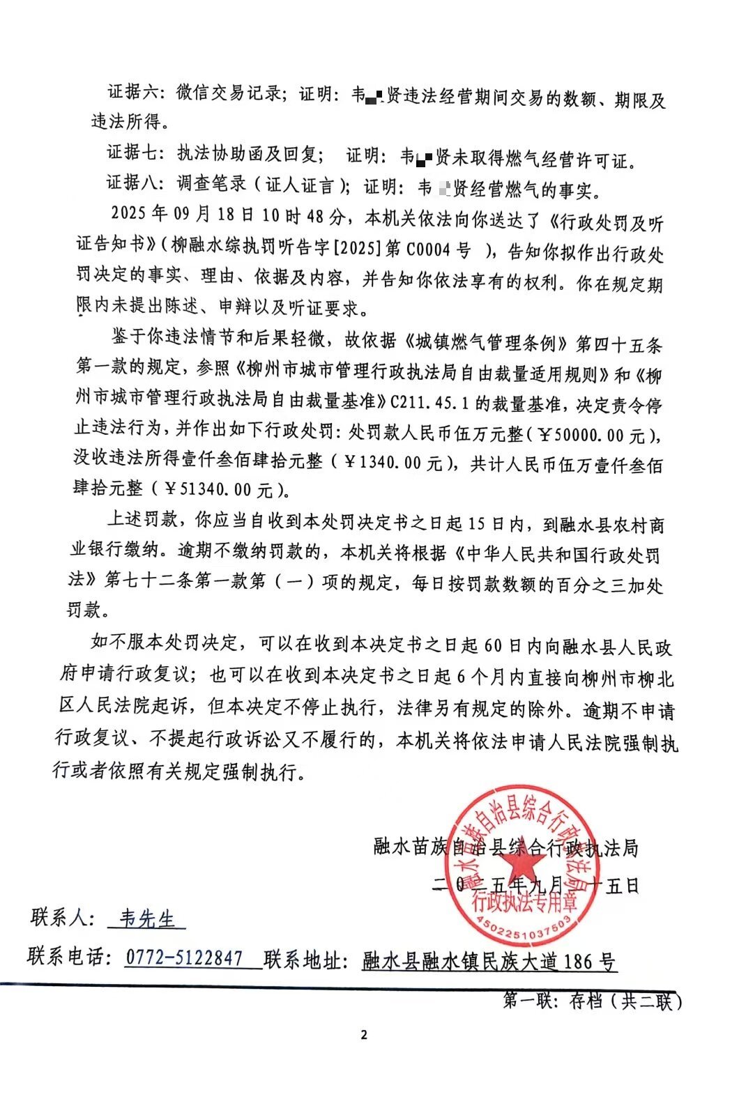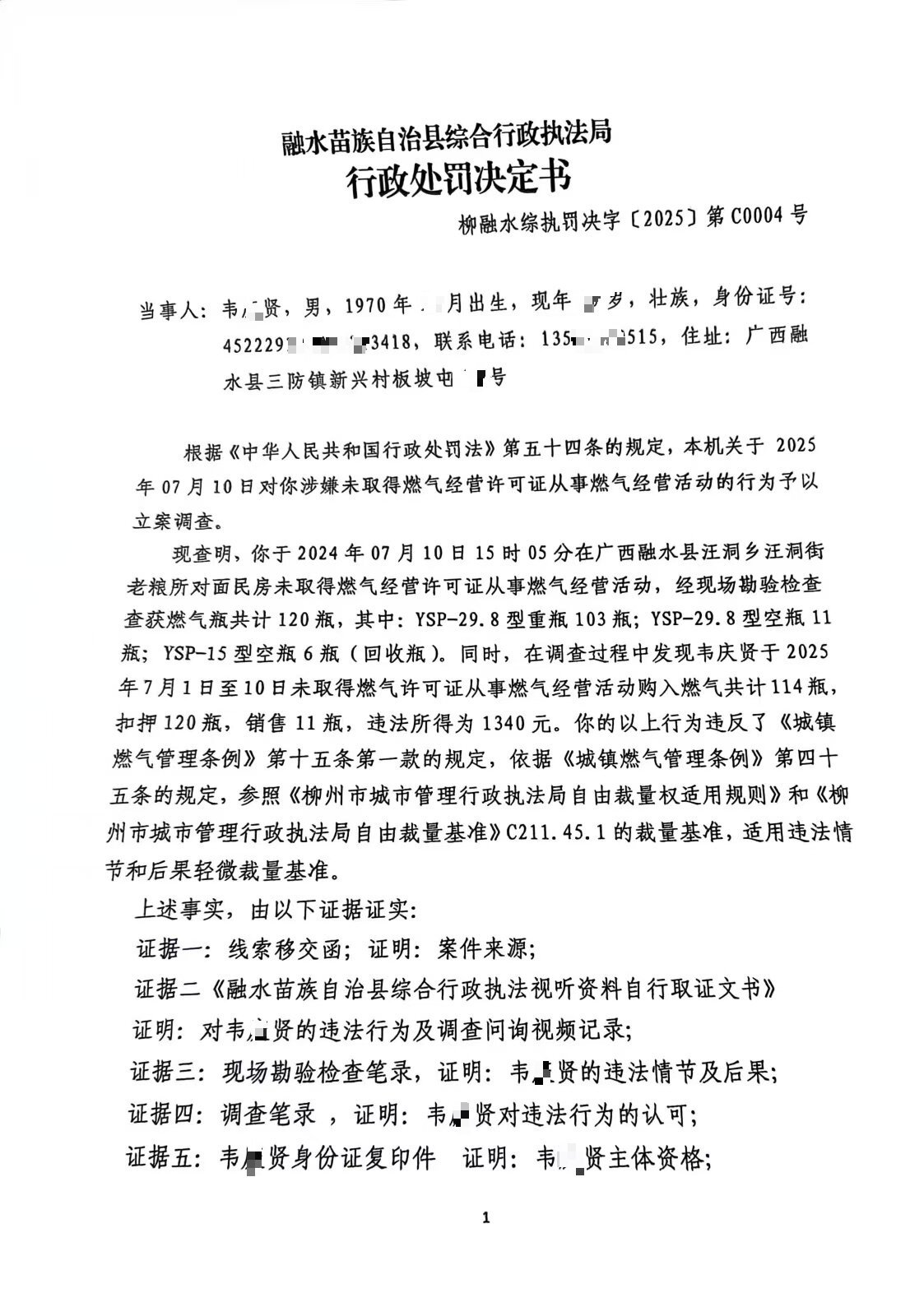 柳融水综执罚决字〔2025〕第C0004号