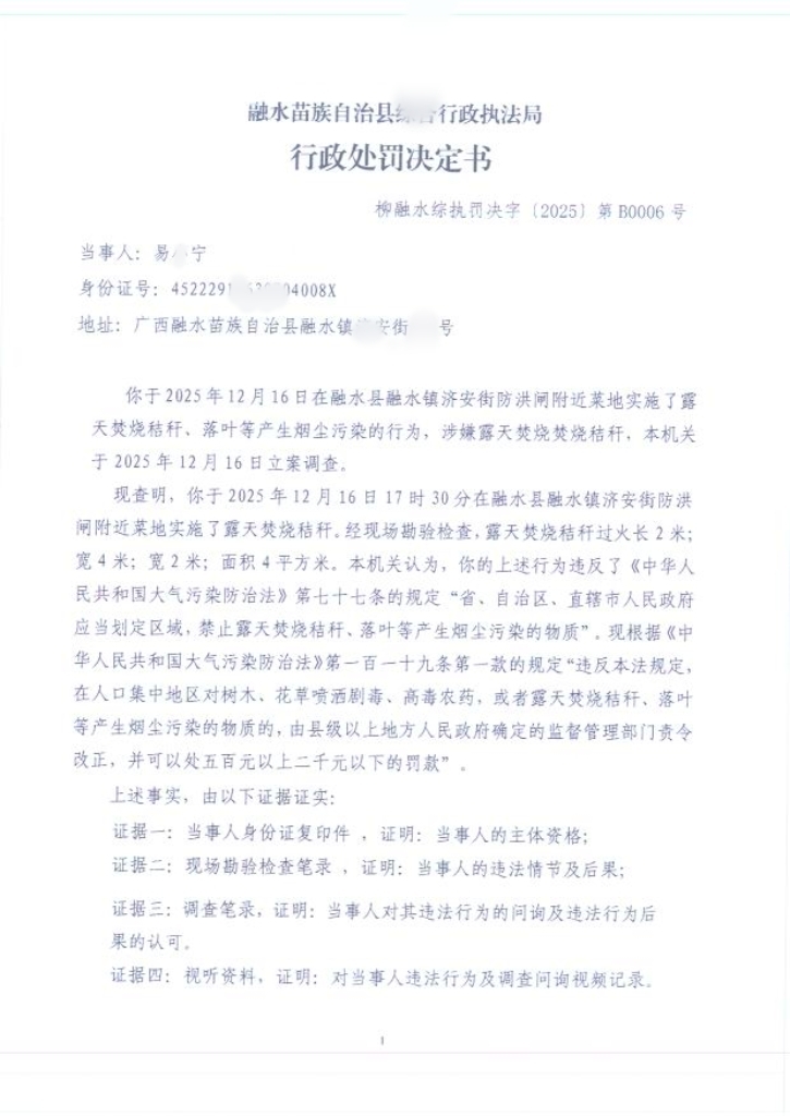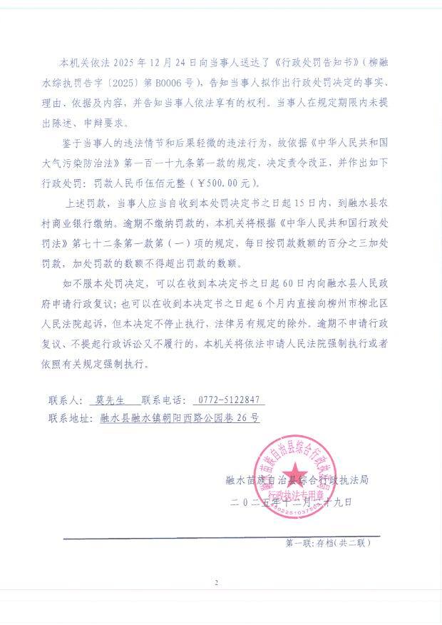 柳融水综执罚决字〔2025〕第B0006号