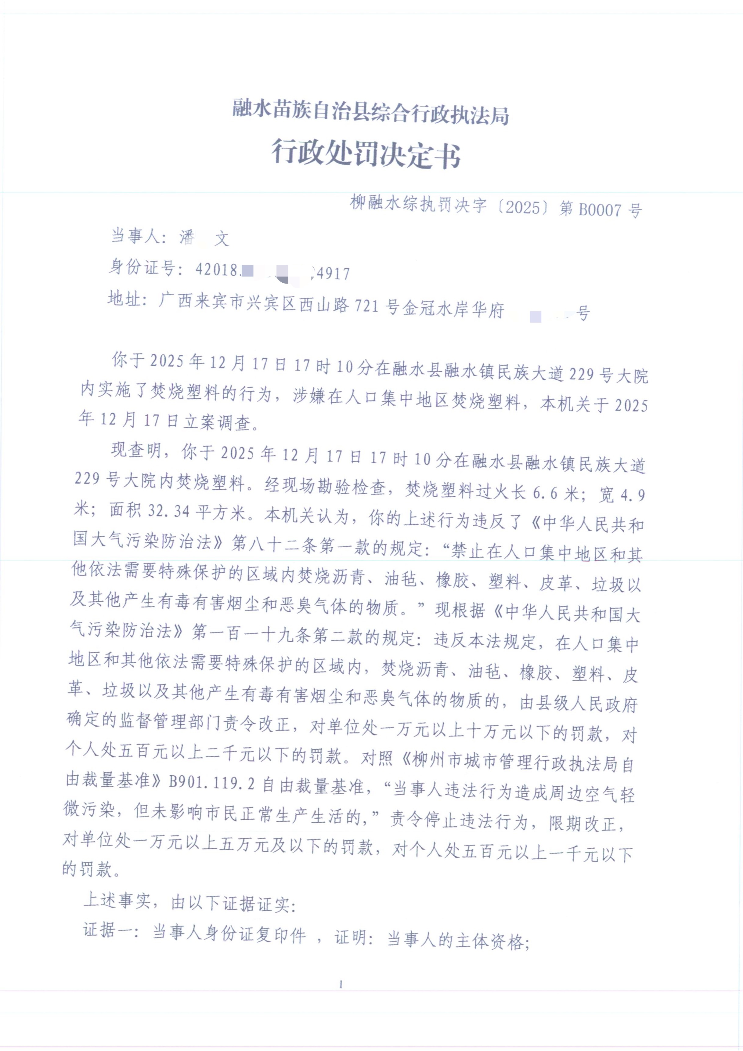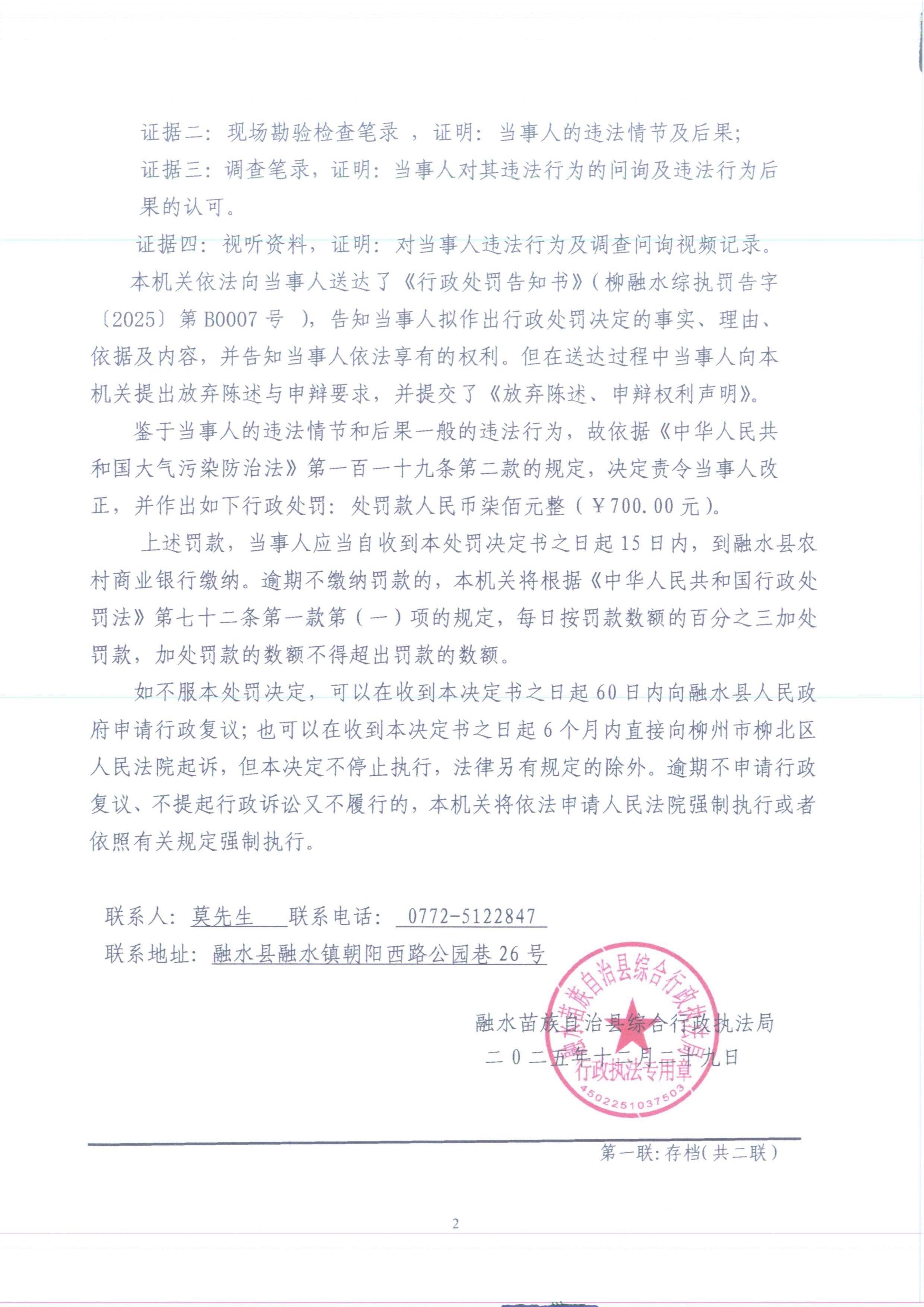 柳融水综执罚决字〔2025〕第B0007号