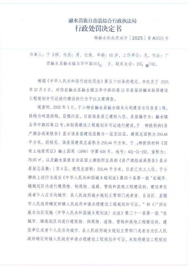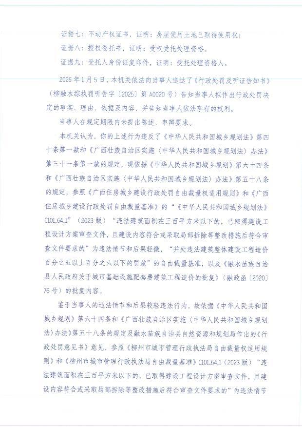 柳融水综执罚决字〔2025〕第A0020号