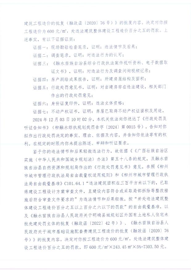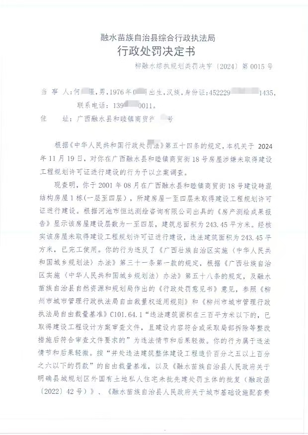 柳融水综执规划类罚决字〔2024〕第0015号